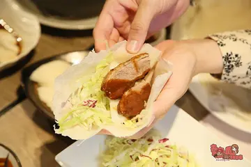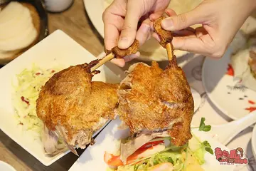 來到宜蘭傳藝老爺行旅住宿,千萬不能錯過的就是他們旗下的「手路菜中餐廳」,早在還沒來用餐之前,就已經先在網路上看到超多人推薦這裡的餐點,這次約了宜蘭在地人一起前來就是要準備大快朵頤一番,聽說「手路菜中餐廳」內的工夫香酥鴨更是來此必點的招牌料理,熱愛吃鴨料理的熱血怎麼可能就這樣輕易放過它,就請大家跟著熱血和心愛a的步伐,跟著我們一起出走台南,來去宜蘭享受更不一樣的在地美食之旅吧~手路菜中餐廳就位於宜蘭傳藝中心內,當晚我們就直接從宜蘭傳藝老爺行旅步行過來用餐,因為一個在頭一個在尾的關係,走過來也大約要花上十分鐘左右的時間,不過沒關係!夜晚的傳藝中心真的超美,吃完飯後還可以散步順便拍拍夜景~手路菜中餐廳的用餐空間在二樓,門口會有專人來帶位,還沒進去用餐前的等候區也可以拍一下,很美很好拍照啊~手路菜中餐廳店內環境很有設計感,高挑型態的用餐空間跟早餐的「透早食堂」風格有點像,只是這裡是以木頭和鋼鐵做結合,時尚中又帶點復古風格,跟我們這次入住的傳藝老爺行旅一樣。大量採用落地玻璃的設計,坐在這裡還可以直接欣賞到傳藝中心的夜景,整個空間帶點浪漫又帶點溫馨,讓我們印象超深刻!以前小時候阿嬤家都是用這個放碗盤耶,真沒想到在這裡竟然也能看到~餐點的選擇上,除了單點以外還有套餐和桌菜型態可以做選擇,不管是情侶檔或是家人好友多人出遊,這裡的餐點都可以一次搞定~我們這次來點了晚間套餐,價格每人600+10%服務費,一共會出八道料理,真的不用擔心不夠吃,因為你只會吃到最後打包!份量真的很夠,而且真的也都很好吃耶~前菜式和風帶子松阪豬,是以沙拉型態出餐,除了有口感極佳的松阪豬以外,還有干貝在裡頭,配上新鮮的鳳梨一起吃,消暑又開胃。鴨蝦寶小卷米粉湯這道看似平凡無奇的料理,沒想到一入口便立刻讓我們改觀,尤其是那口感鮮甜的小卷更是讓人驚艷,而這湯頭清甜回甘,更是海鮮新鮮的保證。功夫香酥鴨腿拼手工芋丸香酥鴨腿的功力之了得,放到嘴裡輕輕一咬便骨肉分離,採用先滷後炸的方式來製作,費時費工!搭配上以紅豆泥和芋泥製作成的手工芋丸,根本就是「胭脂馬遇到關老爺」,兩個誰也不能離開彼此啊XD壯圍蜜瓜蒸草蝦這一道蒸草蝦的口感無比的甜,下方的菇菇除了讓草蝦更甘甜之外,也吸附了草蝦得鮮,兩者相輔相成食在絕配~季節時蔬炒三星蔥醬魚排這道魚排真心獲得心愛a的讚賞,口感肥嫩之外,那醬汁更是加分~傳統美甜品、應時四季果做完完美一餐的結尾,當季的水果和甜點更是不可或缺的,但是但是~別以為看到這裡要結束了,後面!還有更好吃的要來上桌~工夫香酥鴨來到手路菜中餐廳用餐,如果一起前來的人數夠多的話,真心建議大家可以點這道工夫香酥鴨,這一道可是以櫻桃鴨加入中藥醃製24小時入味的招牌手路菜,以水煮、清蒸最後在大火油炸等步驟,才會完成這一道超費時的美味。一鴨三吃的工夫香酥鴨,除了可以搭配餅皮佐甜麵醬來吃以外,更可以把剩下的骨頭製作成湯品來吃,而且這裡面還放上了宜蘭三星的上將梨,雖然說他只是小小配角,但卻在這道料理中扮演中不可或缺的角色,因為它實在太香甜了啦,讓這一道工夫菜又再更加分了呢~或者是你可以用蝦餅來包裹鴨肉,再加上一顆金棗來吃,不騙你這樣吃還真是夠特別,而且還更有口感風味更佳呢。烤鴨腿真的拿到就不要客氣快點往嘴裡送了,不然應該很快就被搶食光,那酥脆的鴨皮不管是單吃,或是配著鴨肉,口感都超好,當天我們沒吃完還拿回去當宵夜配酒耶。湯品的部分喝起來不油膩,而且加入了大量的蔬菜和蔥來提味~呼~這下子是真的吃完這頓超美味的全鴨料理了,這次來除了住的好以外,這工夫香酥鴨的魅力更是徹底收服我!大家如果有想來這吃,記得一定要先打電話預訂喔~…查看更多