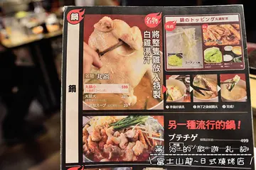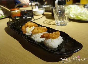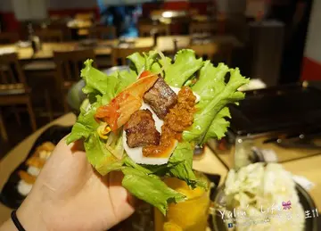 油花在烤盤上滋滋作響,是不是相當吸引人,好久沒吃燒烤的Yulin,開始想念啦!完全不需要動手,專人桌邊服務太貼心了,也不用怕烤失敗,每口都是美味!紅色大燈籠很明顯就認出來了,交通也相當方便,距離捷運西湖站不到8分鐘的路程就到了~店家風格偏向工業風,牆壁上貼滿好吃好喝的商品,還有店家的手繪好厲害呀!以紅色造型的抽煙設備,非常吸睛,不用擔心油煙散佈在室內,也不會有臭臭的油煙~生菜包肉組合 NT$89 (泡菜,豆芽醬菜,肉味噌)肉味噌大家一定要嘗試看看,是店家自己熬煮的,剛上桌還感受到溫溫的熱度,雖然口味偏重,但味噌與肉香融合在一起,味道很不錯辣味金槍魚罐頭(起司) NT$199鹹香帶辣的金槍魚,還有濃郁的起司香與脆口鮮甜的玉米,口味偏重,非常夠味下飯,也非常適合沾上烤好的肉類,別有一番風味!高麗菜沙拉 NT$59爽脆的高麗菜淋上店家特製沙拉醬,淡淡的香油香氣,清爽開胃,高麗菜包肉也很解膩~三色豬五花 NT$299Yulin一看到新菜,整個眼睛都亮了起來,二話不說一定要吃~分別有三種口味(青醬,咖哩,味噌)五花肉在烤盤上滋滋作響的聲音相當悅耳呀!!!Yulin的口水一直往肚裡吞呀,一直盯著眼前的五花肉先由口味較淡的到重口味~青醬在烤的同時,把五花肉逼出多餘的油脂,九層塔香氣淡淡飄香~咖哩每次看到店家剪五花肉的斷面秀,Yulin就怦然心動,剪的聲音就能感受到五花肉脆脆的~在嘴裡不時散發咖哩的香氣,越嚼香氣越明顯,五花肉的肉質Q彈多汁,讓人一口接著一口~味噌雖然口味最重,但一致受到Yulin與Yulin妹的喜愛,味噌口味一點也不死鹹,味道甘甜甘甜的~脆口的五花肉伴隨著味噌香氣也相當迷人雞丸燒 (半隻) NT$299這道菜也是新菜之一!!! 有分半隻與全隻雞,非常適合大家一起享用~白拋拋油亮亮的雞,本身是熟的,沒有經過任何調味,店家還會運用上面的蔥絲,幫我們特調醬汁,沾雞肉意想不到的美味~因為是全熟的關係,將表皮煎至變色焦焦脆脆感就可以食用~店家也會在烤盤上剪成適量的大小方便客人食用~口感鮮嫩Q彈的雞肉,單吃可以享受到基本身的鮮甜味,喜歡重口味,一定要試試店家特調的沾醬,更凸顯肉質口感更加滑順,即使是雞胸肉,一點也不會乾乾澀澀的~野菜燒拼盤吃了那麼多肉,該來點蔬菜均衡一下,除了玉米筍,青椒外,還有磨菇,杏鮑菇,洋蔥,都沒先經過任何醃製與調味,呈現最原始的蔬菜鮮甜味,灑點海鹽或者沾上龍粉末更提味~豬橫膈膜 NT$149本身肉沒有經過任何調味,卻沒擾人的豬味,烤的非常鮮嫩多汁,沾點店家的醬汁都很不錯~單吃肉覺得有點無聊嗎?! 來點生菜,裡面加入泡菜,豆芽菜,沾醬,一大口豪邁地往嘴裡塞,好滿足好豐富!天婦羅雞飯糰 以天婦羅的麵衣酥炸雞肉,在裹上一層天婦羅的醬,肉質鮮嫩,鹹甜鹹甜的滋味,不油膩~飯上還擠上美乃滋更加滑順,增添不少飽足感~鳳梨角嗨 NT$149 (未成年請勿飲酒,喝酒不開車)本來很想選草莓或者是巨峰葡萄口位,但Yulin那天腦波一直想點鳳梨口味~果然一上桌就令人驚艷,好多大塊的新鮮蜜鳳梨,酸甜的滋味,剛喝時濃郁的鳳梨香,很像在喝鳳梨汁的感覺,是最後才會有啤酒的感覺~非常不錯!生榨葡萄柚角嗨 NT$139 (未成年請勿飲酒,喝酒不開車)喝的到滿滿的葡萄柚纖維,可是人氣飲品之一呢!!! 吃燒烤配上啤酒,非常過癮呀!吃得好滿足又暢快呀! 一群三五好友聊天大啖美食真是過癮!…查看更多