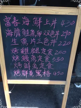 《富春食堂》 個人海鮮丼飯 、熟食定食套餐、壽司、個人海味單點、個人無菜單料理需要兩個人起才接單菜以海鮮為主由老闆自由發版,歡迎大家的家人、同事、朋友來聚餐或包場 巴台可以坐八個人以無菜單預為主 座位有三十個 聚餐桌子拼起來可以辦三桌 一桌可坐八到十個人 富春預約以無菜單跟聚餐辦桌預算好的來預約 其他現場單點的客人可現在排隊