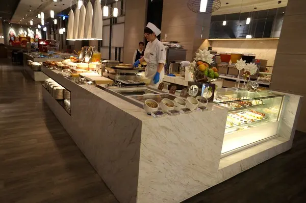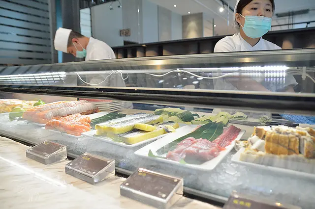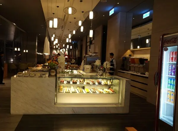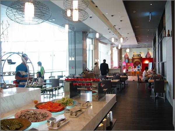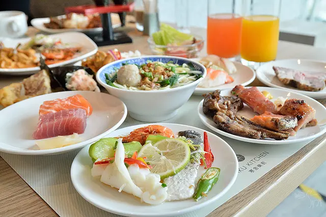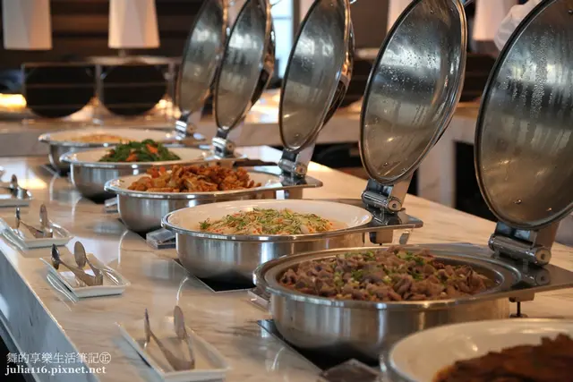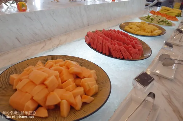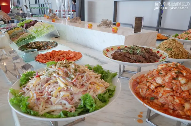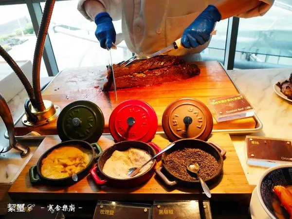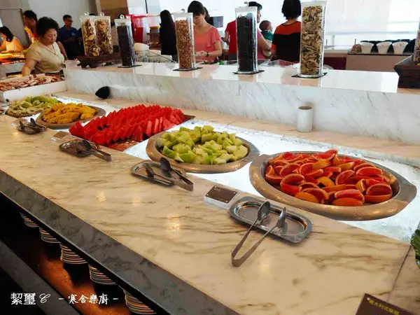 等了兩個月,終於吃到啦!交通方式:捷運板南線南港展覽館站1號出口,出站右手邊即是展覽館位於南港展覽館3F的Buffet-『寒舍樂廚』,開幕前就以主打提供70多種甜點吃到飽而未演先轟動開放電話訂位之後根本是一位難求真的是很難求,因為它們根.本.不.接.電.話我可是親眼目睹,請待我娓娓道來這次的用餐,我是兩個月前訂的位置,在訂到之前我是每天打電話,早上打完下午打、下午打完晚上打每天起床想到的第一件事就是要訂位,彷彿當時的人生目標就是吃樂廚了可打了一個星期,始終沒有接通過~身心俱疲的我最後想到一個辦法『直接去南港展覽館訂位吧』沒錯!我鐵了心要吃到它,於是親自前往南港展覽館,我就不信face to face還訂不到!現場等候訂位的人還不少,想必也是電話打不通才來的!值得一提的是,櫃檯人員的態度很親切有禮,沒有因為現場忙碌及電話響不停而失了耐性輪到我訂位時,我親眼目睹電話響了16通無人接聽,電話鈴聲沒有停止過,但現場完全沒有人有空理會個人覺得,寒舍樂廚的生意好到必須專門請一個人來接聽電話及處理訂位才是總之最後,我是親自跑了一趟才訂到週末的位置根據上週詢問的結果,2015/1月假日都沒有位置了唷,平日午晚餐比較有機會!消費方式:原價$780+10%╱人2014/12/31前,平日午餐$680+10%,南港╱內湖╱汐止居民憑身分證享9 折優惠食記開始之前,先分享兩個用餐小撇步:①吃午餐,請訂11:30;吃晚餐,請訂17:30能多早入場就訂多早,此時食材最齊全,不擔心遇缺不補的情況,拍照也比較好看②可以的話先拿甜點,部分甜點數量有限甜點有沒有70種不知道,這天我吃了至少20種,想再拿一顆馬卡龍卻等不到等吃完鹹食才取甜點的話,很有可能面臨冰櫃空空的囧境內部有四大餐台區,從甜點區、冷盤、熱食再到日式生魚片與壽司吧餐廳約可容納250個座位,並設有親子遊戲區,讓帶小孩的家長有更方便且舒適的用餐空間走道空間很寬敞明亮,唯冷熱食分在兩個不同區域要走比較遠,取餐上有些不便,特別是對長者來說首先看到是甜點區,數十種蛋糕甜點,以及煎餅、鬆餅、豆花、布丁、麵包等等不得不說,寒舍樂廚的甜點都很有水準,不僅是外表精緻可口,味道也都很不錯!其實我最討厭吃這種傳統糕點,但這天我還是每一種口味都品嘗了(寧可錯殺一百也不可放過一個的概念)非常令人意外的好吃,口感超棒der!後面會有食物近照分享^_^眼前黃色的南瓜抹茶布丁很好吃呢,口感像是甜的蒸蛋更意外的是後面那一木桶裝的是豆花,這在吃到飽餐廳不常見到哩!新鮮麵包還有熱呼呼、軟綿綿的舒芙蕾及麵包布丁六種口味的Haagen-Dazs冰淇淋,最少也要吃過六球再走你說是吧!飲料選擇不算多,咖啡、果汁(葡萄柚/柳橙/葡萄)、茶包、汽水(可口可樂)想喝水的捧由也有礦泉水可以取用冷食區包含各式冷盤、新鮮沙拉與水果,看著照片莫名的又餓了...特別喜歡吃沙拉,蔬菜洗的很乾淨,選擇也十分豐富!西瓜、木瓜、鳳梨的水分豐沛,超甜的離開甜點與冷食區,走過這條通道前往熱食與生魚片區囉!現場真是滿滿的人潮,幾乎沒有空桌,建議大家訂位一定要選擇最早的時間(11:30 or 17:30)除了可以吃的比較久之外,也可能吃的比後面進來的人多XD因為看過有的網友反應樂廚人手不足,食物被拿完了隔很久才補如果你12:30才進場,那是非常有可能會碰到這種情況,不見得會吃不到,是可能會碰到等候補食材的情況而且第一批進場,確實可以悠哉悠哉取食物,沒什麼人跟你搶,就是暢快啊!餐廳有提供兒童餐具,訂位時記得事先告知窗外看出去就是捷運站另備有可容納20人的大包廂,適合公司或各種聚會熱食區,提供蒸煮炒炸等多項食材,習慣吃白飯或麵食的也有貼心準備一整排炸物看上去十分誘人可口,有炸蝦、炸時蔬、烤魚、筊白筍...等等寒舍樂廚引進喜來登12廚中的經典擔擔麵喜歡吃麵食的捧油也不會失望呢,油麵、板條還是米粉,任君挑選!肉類當中我最愛牛肉,所以這邊也只記得有牛肉XD,旁邊那一塊不知道是什麼接著看到生魚片壽司區,每天新鮮提供來自日本的7種生魚片,每一種都好新鮮!另有手捲與握壽司喔!生魚片一份都是兩片,可以一次點兩份、三份這樣比較過癮XD我超推甜蝦,一份只有兩尾,一下就K.O了~我都是兩份兩份的點這種壽司我是不會吃的,簡直就是佔肚皮空間啊哈哈哈哈握壽司的部分我只吃鮭魚及炙燒鮭魚,好喜歡鮭魚滑嫩細緻的口感!炙燒系列永遠是我吃握壽司的第一名選擇,可惜沒有炙燒比目魚 來了來了,要吃了要吃了XD生魚片都相當新鮮,要不是桌上還有一大堆甜點等著我消化,我願意一直吃生魚片吃到打烊每個人桌上都像這樣擺滿了食物,更棒的是幾乎每一種都合我胃口,哈哈哈好幸福啊!讓我大愛的鮭魚與甜蝦牛肉的色澤與熟度其實很不錯,可惜我似乎吃到筋最多的部位,一整個咀嚼肌爆炸可以沾點玫瑰鹽或紅酒醬一同入口,還是挺好吃! 吃完這一餐,我真的是肥到無路可退了!喜愛吃甜點的捧油一定要記得先拿甜點啊(再三叮嚀貌),馬卡龍好吃唷我記不得所有甜點名稱,但每一款我都品嘗過,無論在口感或味道方面,都很具水準,沒有雷!下圖右上是咖哩口味蛋糕,好特別!我愛提拉米酥~輕而易舉完食它當天現場有四種口味馬卡龍,我只拿到咖啡色與紫色的,後來想再拿紅色與黃色就沒有了這一盤中式糕點貌似不起眼,想不到口感如此之好真是令我意外我推薦後面黑色的芝麻