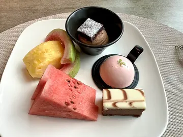 寒舍集團酒店的餐廳一直都是水準之上,其中寒舍艾美的探索廚房更被稱謂buffet之王,當然身為姐妹館的寒舍艾麗也不遑多讓,這次來試的就是好評不斷的LA FARFALLA自助午茶 !壹. 環境LA FRAFALLA意思為蝴蝶的義大利餐廳,餐廳就位在6F大廳的旁邊,主要是圍繞著一個空中花園,在稍顯昏暗的室內點綴一些陽光餐廳本身不大座位也非常寬敞是一個非常愜意舒緩的空間貳. 食物餐廳本身就是供應Semi Buffet為主所以取餐區並不大只有一圈加一個料理台走的是一個求好不求多的概念一進去左手邊就是飲料吧檯除了自行取用的果汁咖啡外也有專人拉花拿鐵外圈屬於冷食區鹹甜點各半首先看到的是預辦沙拉區起司凍肉當然也是聯袂出席轉個彎就是三明治特別的是要用一旁的手套拿起可頌佛卡夏都是飽肚之物需要斟酌拿取特別推薦的則是餐前小品以湯匙乘裝的干貝天使麵一口滿足另外蝦松露蛋沙拉更是不能錯過松露的味道十分濃郁和蛋沙拉巧妙結合捨棄HaagenDazs來吃這個才是明智之舉接著來到甜品區兩款熱甜品以及一旁的餅乾馬德蓮區居然還有牛扎糖雖然也是一般而已(跳過)嗯嗯這邊蛋糕櫃才是精華約莫10款各式蛋糕都非常精美好吃尤其一款橘色柑橘口味蛋糕內裡多汁根本是從高級蛋糕店走出來的整個激推水果擺在蛋糕隔壁同一個櫃子裡。然後轉個彎是冰淇淋就跟探索廚房一樣擺出的是HaagenDazs拜託現在都什麼年代了還擺出HaagenDazs充數人家國賓好久以前就開始自製雪糕了而且這裡還只有4種非常普通的口味比麻辣鍋店還不如整個就是興趣缺缺是直接跳過逛完一圈最後是沙拉格然後來到重頭戲鹹食料理檯首先看到兩鍋牛肉湯分別是清燉與紅燒這個就是最厲害的地方了你可以單獨喝牛肉湯或請廚師製成牛肉麵麵大概只會給兩口的分量十分適宜牛肉則是非~常之大塊豪不小氣軟嫩入味更是不在話下熱食大概5-6種橫跨麵飯豬雞至蔬菜十分廣闊最後則是肉檯和pizza及義麵推薦的是美國肋眼爐烤牛排以及義麵燉飯牛排本身雖然顏色偏紅但完全沒有血水口感大概就是鮮嫩多汁身為義大利餐廳義麵燉飯當然不能輸料多味美外還有做到義式偏硬的口感自助餐少見的Q彈口感終於在這裡展現查看更多