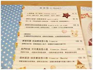 就上網看到他們的費南雪蛋糕的造型都很可愛,就還要了一個夢遊花園 奶油費南雪小兔(NT100)費南雪是硬蛋糕, 我沒有很喜歡吃硬蛋糕啦, 就是被外表吸引我去點的~ 很手工很homemade的味道. 其實我在Daiso有看過這個小兔的蛋糕模型, 在家也可以做一個 XD 這裡的餐點, 甜點都是小小份的, 其實人多可以試更多. 不過我就覺得這裡沒有很適合來吃晚餐, 感覺不會飽… (也可能我晚餐沒辦法吃這麼可愛的兒童餐啦 XD 換作是午餐, 下午茶, 我就會想來這裡. 假日還有早午餐喔, 可到他們的facebook專頁看看喔 …查看更多