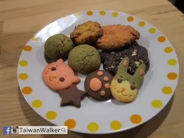 台灣的文章真的有一段時間沒打, 因為之前在香港的活動比較多, 要先寫. 抱歉各位久等了, 先介紹你們一家我覺得很特別的店店名叫小孩散步. 會吸引我去的原因是因為看起來有很多懷舊風的玩具, 我就很喜歡看那些東西. 食物看起來也可愛~ 本身我沒有對他們的食物太大期望, 但試了些餐點, 水準蠻驚喜的自從有大安站之後有多去那邊, 交通比較方便嘛, 在找大安區美食的時候找到這裡看到風格還蠻可愛的, 就吸引我去了去的時候時間其實蠻尷尬的, 5點多快要6點. 那晚是約了在台北讀中文的泰國朋友吃晚餐, 但朋友要晚一點才可以跟我吃飯, 所以就先來這等她一進門口就很開心了, 桌椅跟擺設都非常可愛喔~!很有童風的桌椅, 牆壁, 擺設跟玩具. 我就自己一個人去, 所以點好餐之後拿著相機一直拍. 可能我去的時候時間就是在下午茶結束跟晚餐之間, 人就只有1,2桌. 就更好拍也更方便看著那些有趣的擺設那邊的玩具真的有很多, 但要注意這裡不是親子餐廳, 12歲以下的小朋友就沒辦法去了因為店主想讓大人們有一個安靜的環境聊聊天放放空, 不過呢… 當天去有一桌高中生講話也是很吵 -___- 很喜歡他們外面的懷舊電視呢特地挑了跟熊貓太太一起坐, 可能就太開心了, 餐點越點越多 XD點了一杯散步紅茶(NT100), 冷的話是用上台灣麥香紅茶. 麥香蠻突出的, 不錯喝請他們去糖, 因為要吃甜點, 不想喝甜的飲料, 而他們的茶品都沒有咖啡因的, 怕睡不著的朋友晚上來也能點. 但之後我有點一個飯套餐, 所以這杯飲料免費的本來來到就打算吃一份甜點就好, 看到他們的餅乾很可愛, 就先點了這個心情氣象手工餅乾(NT80). 可愛的造型, 吃起來也覺得蠻香的, 餅乾很酥脆. 吃著吃著看到旁邊的高中生點了飯, 又好像很好吃, 就點了其他東西點了他們的"熊貓君的紅酒牛肉“米飯套餐. 這圖不是我拍的, 因為我拍這個飯的照片不知道為什麼很矇 ^^" 是從他們的facebook找到的~ 喜歡他們的紅酒醬汁是加了番茄去煮的, 牛肉塊並沒有很多, 紅蘿蔔很入味也很甜, 蠻好吃的套餐還配沙拉, 烘蛋跟飲料. 慶幸這裡的餐點都沒有很大一份, 所以還能吃之後那一餐