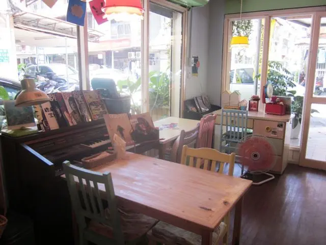 台灣的文章真的有一段時間沒打, 因為之前在香港的活動比較多, 要先寫. 抱歉各位久等了, 先介紹你們一家我覺得很特別的店店名叫小孩散步. 會吸引我去的原因是因為看起來有很多懷舊風的玩具, 我就很喜歡看那些東西. 食物看起來也可愛~ 本身我沒有對他們的食物太大期望, 但試了些餐點, 水準蠻驚喜的自從有大安站之後有多去那邊, 交通比較方便嘛, 在找大安區美食的時候找到這裡看到風格還蠻可愛的, 就吸引我去了去的時候時間其實蠻尷尬的, 5點多快要6點. 那晚是約了在台北讀中文的泰國朋友吃晚餐, 但朋友要晚一點才可以跟我吃飯, 所以就先來這等她一進門口就很開心了, 桌椅跟擺設都非常可愛喔~!很有童風的桌椅, 牆壁, 擺設跟玩具. 我就自己一個人去, 所以點好餐之後拿著相機一直拍. 可能我去的時候時間就是在下午茶結束跟晚餐之間, 人就只有1,2桌. 就更好拍也更方便看著那些有趣的擺設那邊的玩具真的有很多, 但要注意這裡不是親子餐廳, 12歲以下的小朋友就沒辦法去了因為店主想讓大人們有一個安靜的環境聊聊天放放空, 不過呢… 當天去有一桌高中生講話也是很吵 -___- 很喜歡他們外面的懷舊電視呢特地挑了跟熊貓太太一起坐, 可能就太開心了, 餐點越點越多 XD點了一杯散步紅茶(NT100), 冷的話是用上台灣麥香紅茶. 麥香蠻突出的, 不錯喝請他們去糖, 因為要吃甜點, 不想喝甜的飲料, 而他們的茶品都沒有咖啡因的, 怕睡不著的朋友晚上來也能點. 但之後我有點一個飯套餐, 所以這杯飲料免費的本來來到就打算吃一份甜點就好, 看到他們的餅乾很可愛, 就先點了這個心情氣象手工餅乾(NT80). 可愛的造型, 吃起來也覺得蠻香的, 餅乾很酥脆. 吃著吃著看到旁邊的高中生點了飯, 又好像很好吃, 就點了其他東西點了他們的"熊貓君的紅酒牛肉“米飯套餐. 這圖不是我拍的, 因為我拍這個飯的照片不知道為什麼很矇 ^^" 是從他們的facebook找到的~ 喜歡他們的紅酒醬汁是加了番茄去煮的, 牛肉塊並沒有很多, 紅蘿蔔很入味也很甜, 蠻好吃的套餐還配沙拉, 烘蛋跟飲料. 慶幸這裡的餐點都沒有很大一份, 所以還能吃之後那一餐