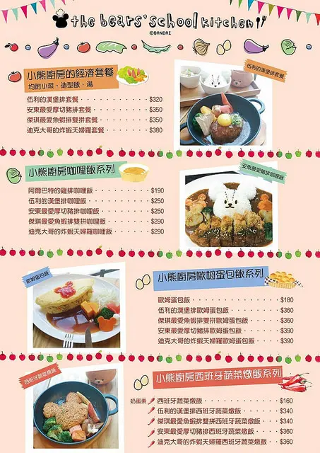 小熊學校快樂廚房 (台北) 網址: https://s.openrice.com/cHRSm02z4G300 地址: 台北松山區民生東路五段191號 電話: +886 0227615008