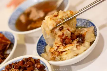 Pork Belly / 小菜 / 瓜仔肉湯 / 白菜魯 / 白飯 / 肉飯 飯 / 香菇魯肉飯 / 滷白菜 油豆腐 / 蒜味雞 / 辣椒醬 / 清湯瓜仔肉 / 滷白菜 / 滷肉飯 / 滷豆腐 / 滷筍絲 / 燉肉飯