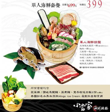 小當家海鮮鍋物一直是我的口袋名單之一民生店離長庚醫院很近,這天我們去看同事的baby後就去享用海鮮大餐▼座位間還蠻寬敞舒適▼裡面還有一面牆放很多好酒 《酒後不開車》▼得到世界第一的KAVALAN噶瑪蘭威士忌《酒後不開車》▼餐具▼左邊是柚子醬,很適合沾肉品用餐時間2小時,每個座位小抽屜裡面都有放衛生紙、濕紙巾湯底有4種選擇:原味蔬菜、白醬油蔬菜、黃金泡菜、海瓜子昆布蔬菜海鮮雙人套餐內容除了主餐(雙人海鮮拚盤),蔬菜桶1份、牛培根或梅花豬(2選2)副餐有讚岐烏龍麵、蒸煮麵、寬冬粉或白飯(4選2)我們今天選擇阿根廷野生天使紅蝦雙人套餐 $899▼蔬菜桶、牛培根X2、白飯、蒸煮麵▼蔬菜桶 (白蘿蔔、高麗菜、蕃茄、南瓜、豆腐、玉米筍、燕餃、滿天星菇、香菇、絲瓜、蟹肉條)▼牛培根(1份大概約有15片肉),總共2份▼雙人海鮮拚盤-天使紅蝦4尾(白蝦、北海道大扇貝、小鮑魚、生蚵、大干貝、小烏賊、花枝漿、蛤蜊與魚片卷)▼我的手指寬度大約有15公分▼帶葉玉米筍▼好大尾的天使紅蝦一邊只能煮一隻,一隻就把半邊鍋子塞滿了▼吃起來很新鮮肉質飽滿鮮甜,口感紮實有彈性▼肉品的品質也不錯,不是那種一涮就薄到破的肉片,有彈性好吃▼飲料區(自行取用)▼冰淇淋 (mingo)聽說是泰國有名的冰淇淋心得報告~海鮮小當家主打新鮮海產,所以鍋物食材選擇都是以海鮮為主套餐附加的肉品份量也不少,有肉有海鮮超飽足除了雙人套餐外,也有單人海鮮套餐$499可選擇,1個人來用餐也是OK的下次我會想吃其他的主餐......野生龍蝦、螃蟹、帝王蟹腳都好誘人呀喜歡海鮮鍋物的人一定要來試試※※※※※※※※※※※※※※※※※※※※※※※※※※※※※※店家資訊:《小當家海鮮鍋物 民生店》電話: (02)27150850 (建議先訂位)營業時間:週一~週日11:30~22:00(有加收一成服務費)地址:台北市松山區民生東路4段56巷1弄1號 公車可以坐到長庚醫院站或公教住宅站 (捷運有點遠,所以不建議哦)▼目前有3家分店…查看更多