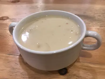 位於天母SOGO附近巷弄中的義大利麵店店家自製的醬料跟湯品吸引了許多天母人到此品嘗店門口有可愛的娃娃布置提醒下午時間3點到五點休息喔店內有很多手板可以用來拍照店內吧台冰櫃有新鮮水果可以打成果汁還有自製甜點這邊採取自助式要喝水、餐具、醬料都自己來喔店家可愛的兩個小孩子這裡還有超多桌遊可以在店裡玩看一下菜單價位都不高從一百多到兩百不等A餐附贈飲料跟麵包50元B餐再多了濃湯70元 店家特別推薦濃湯(+20)C餐再多了沙拉(+20)其實都不貴這次選的飲料是奶茶中規中矩濃湯店家大力推薦蠻不錯喝很濃郁我非常喜歡這個麵包跟我中山站吃到的羅絲瑪莉一樣好吃可惜麵包不能續青醬燉飯米心滿Q彈粉紅醬干貝義大利麵料好實在加上起司粉更好吃整盤吃得一乾二淨看有多好吃查看更多