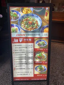 星期六晚上,途經大墩路,發現食肆外有大約有十數人等位,記憶所及,這個街口應該只有好小子擔仔麵比較人多,不過當天晚飯已定,又不想排隊等候,停下腳先拍照改天再試。網上找尋一下,Goolge食評為滿分的5.0而評論多達二千多條。剛好今日有空,又三連假過後,避開人潮,就打着好奇心過去試一試,一探究竟。到達時間剛好開店,在店面拿了菜單進店,看一下菜單,還不算貴。店內大約十來個座位,賣點為一麵三食,湯跟麵餸分上,先飲湯,再吃乾麵,再把湯倒入,再吃湯麵。為川麵加上新意,綽頭打卡賣點十足!花椒麻醬辣肥牛拌麵:湯算清甜,麵亦煙靭彈牙,乾麵有點類似日本沾麵的感覺。但肥牛一般而份量偏少,麻辣可以,但蛋已熟透!其實麵質加不加湯,分別不大,湯麵不算爽口,隨餐送冰條!…查看更多