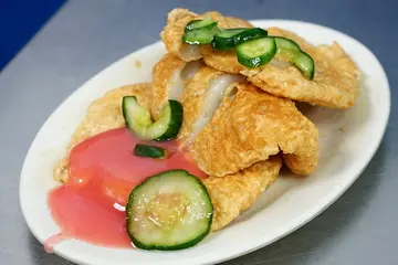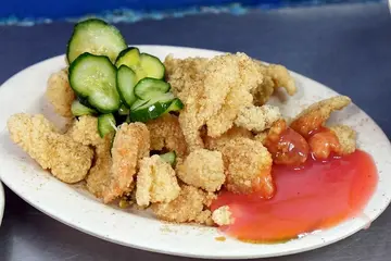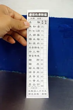 剛剛去吃了雙管四神湯之後,我就跑來去這間很有名的米粉湯啊,聽說這間也是開了30年的老店啊,而且除了米粉湯,他們還有很多小菜啊,例如天婦羅啊,炸三鮮、紅燒肉、雞捲等等,天婦羅才15元ㄟ~好便宜喔! 就帶大家吃吃看唷!他們的店的空間不大,不過也是因為是在夜市裡,這點也是不意外啦菜單 店內的選擇還蠻多的ㄟ! 好多都好想吃喔^^菜單上並沒有炸三鮮和魚塊的價格,他們的是寫在另一邊米粉湯(25元)一端上來就聞到香味,而且看起來湯頭的顏色好濃,好好吃的感覺^^他們的湯頭好好喝喔!!!湯頭好鮮甜唷^^米粉湯在一大鍋裡面加了很多的小菜,這些的小菜泡在湯裡面又把滋味釋放到湯裡面,我很喜歡他的湯啊,粗米粉的口感又好Q彈!喜歡它的米粉湯啊^^炸三鮮(70元)裡面有花枝、蝦仁和蚵仔 醃漬小黃瓜再加上甜辣醬實際來吃 他們的外皮口感乾酥不含油,這點真的很棒,炸功真的很好啊,不過吃下去,對食材本身反而沒印象他的甜辣醬味道跟某些肉圓的醬料味道很像,甜甜的,再加上他們帶有鹹味的辣椒醬比較好吃ㄟ!天婦羅(15元)價格15元,但是份量還蠻多的ㄟ~這樣有3片ㄟ 不得不說他們的天婦羅我喜歡ㄟ~,口感好Q彈,外皮微酥又不油,我喜歡,而且這個泡在米粉湯裡,湯頭還會多酥炸過後的油香味唷^^他們的米粉湯好喝啊!湯頭好鮮又夠味,天婦羅乾酥不油口感又好,泡在米粉湯裡還能增加湯頭的油炸後的香氣,而且才15元,很值得點啊,這家真不錯,不過景美夜市好吃的還很多啊,下次來吃其他的^^…查看更多