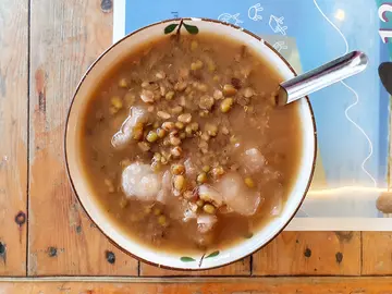 幸福綠豆湯創立於民國53年,是老台東人最愛的綠豆湯,以前的年輕人休假最愛到旁邊的大同戲院看電影,再吃碗冰涼消暑的綠豆湯,早期年代是阿公騎著腳踏車沿街叫賣,現今已經交由第三代接棒經營,濃厚的古早味+人情味,木造懷舊復古的氛圍很吸引人老照片老招牌很有味道,不趕時間的旅人,可以跟老闆黃大哥聊聊天,有好多好多關於台東的故事可以說給你聽老店的堅持就是要真材實料,從選料開始清洗熬煮,一步一腳印,只給客人喝到原汁原味最好的品質,有時候晚一點來就賣完了,老闆用料新鮮不賣隔夜,所以每天備料所需要的,賣完就好 販售的品項都是大家從小吃到大的回憶,有冬瓜系列、綠豆系列、養生系列、茶系列、紅豆系列、養生系列,本來想點綠豆地瓜,又想喝綠豆沙牛奶,招牌冬瓜茶好像也不錯,真的很有選擇障礙哈哈哈每一樣都是很想念的老味道,最後挑了綠豆薏仁,其他的等下次再二訪囉!M先生走到哪都會選剉冰,萬無一失的首選黃大哥相當幽默,笑說喝飲料就是要甜才爽啊!不然喝幹嘛?!從小就是喝全糖飲料長大的,現在如果有機會買手搖飲,一定點一杯全糖去冰的珍珠奶茶,還要加奶精的喔!好內行啊!但是店裡的甜湯真的不會太甜,水、綠豆、黑糖、二砂糖傳承自阿公手藝的黃金比例,甜的剛剛好幸福綠豆湯菜單,來台東旅遊的外國人很多,還有英文說明很國際化 綠豆白木耳 NT.30遵循古法熬煮到很綿密的帶皮綠豆,依然保有嚼感,很大一碗喝完很有飽足感紅豆薏仁 NT.35使用飽滿的萬丹紅豆,喜歡薏仁微甜的口感,愈嚼愈香,是很好喝的紅豆薏仁喔!推推五行開運冰 NT.30滿滿一大碗,只要30元!小心翼翼地挖開上面的冰,裡面有紅豆、綠豆、仙草、愛玉、地瓜,料超滿的!很久沒有吃到這麼紮實的剉冰,真的吃過會想念,寒冷的冬天也要給他吃起來坐在竹椅上,一口一口吃著綠豆湯,好像回到了小時候,簡簡單單卻很無憂幸福的好時光,黃大哥幾乎是全年無休,每天就是這樣的腳踏實地,純樸的生活沒有太多奢侈的享受,來到台東一定要來幸福綠豆湯,吃完帶著滿滿的幸福感回家,推薦給澎油們…查看更多