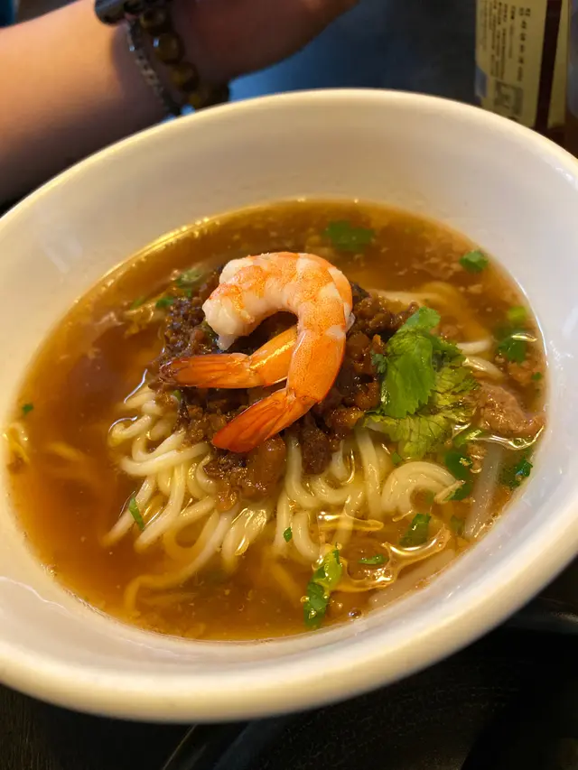 上網睇台北忠孝有咩地道嘢食,見到間度小月都幾出名,果陣香港都仲未有分店。去到現場,原來在橫街,要用GPS 花些時間搵,見到個門牌同裝修好有古色古香味,未食已經加分。order左幾樣餸。第一樣,龍蝦卵河粉圈,價錢150台幣,望落去有3隻色,肉鬆,金荀,卵,3樣加埋好特別,帶點甜,感覺又唔似壽司。第二係,肉燥飯,價錢30台幣,肉燥同飯嘅比例大約1:3,唔同其他鋪頭俾好少肉燥,至於肉燥就好有咬口,入口即容。第3係,擔仔麵,價錢50台幣,湯底熬得入味而濃郁,肉燥香口,面頭有隻蝦做點綴。第4係,炸蝦丸,價錢150台幣,炸粉唔厚,蝦亦打到剛剛好。總結係,食完這次之後,隔一排香港開左間分店,味道同台北這間簡直係差得太遠。台北這間好好多倍。門口及門牌有用心去裝修,好古色古香。…查看更多