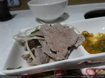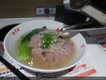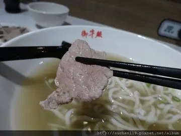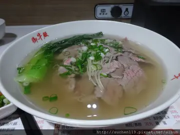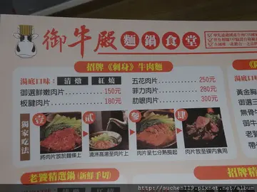 前二週試吃了很特別的牛肉料理御牛殿?這名字感覺就有很利害的fu位於捷運101站附近的御牛殿(莊敬店)玻璃櫥窗相當明亮門口放有menu供參考他們最特別的就是除了是御牛殿還有另一個名字同時並著『鈜景食品企業股份有限公司』是肉品專賣店更是讓消費者能享用到最棒最純正新鮮的好牛肉呢! 我們被安排坐在吧台區前面井然有序的冰櫃調理區好像料理節目裡面超讚的廚房的配置和配色一直很好奇這三桶是什麼?原來是三種湯底(蔬菜.清燉和紅燒)說了是肉品專賣店當然有賣生的牛肉囉!這個感覺很利害-牛肉追溯電子標籤須要多少牛肉馬上就可以處理喔!另一邊有飲料櫃和小菜櫃醬料區(這應該是吃火鍋的客人須要的)菜單果然是很牛阿!!很愛吃牛肉麵的我倒是第一次看到這樣的剌身牛肉麵可以選擇自己想吃的牛肉部份當然價格也就不同啦!!坐吧台的好處就是能看到調理區的樣貌看到小心亦亦的處理肉品真的讓人覺得很加分上菜囉!!無骨牛小排麵-嚴選牛隻第6至第9根肋骨上的肉,經特調滷製而成。我很俗吃牛排吃過牛小排原來牛小排的部位也適用於牛肉麵牛小排滷的很透感覺用力一夾就會散開有一點點肥肉和大量的瘦肉喝口紅燒的湯再咬一口牛小排~好特別!牛小排麵搭配的寬麵口感不錯肉香氣整個能延續下來~口中都是肉的香氣重頭戲來了御牛殿招牌-鮮嫩刺身牛肉麵粉嫩粉嫩的牛肉點綴上綠綠的葱和一點薑絲特地請工作人員讓我拍完照再淋上清燉的湯底立馬變色XD好了!!其實這樣吃是最剛好的喔!!但是我很笨手笨腳的拌了肉片之後再夾起來他........有點老了(老闆默默地走過來說:小姐你放太久了)好軟嫩好好吃再沾上店家特調的醬料超對味的!雖然牛肉有點老但不算太老應該是說可以更快夾起來食用這樣口感會更軟嫩清燉的湯底很鮮甜搭配上一些薑絲我想薑絲是不是要用來去腥味呢?牛肉一點都不腥阿…查看更多