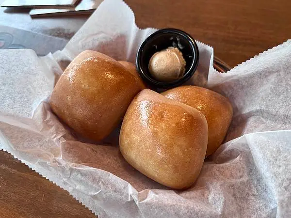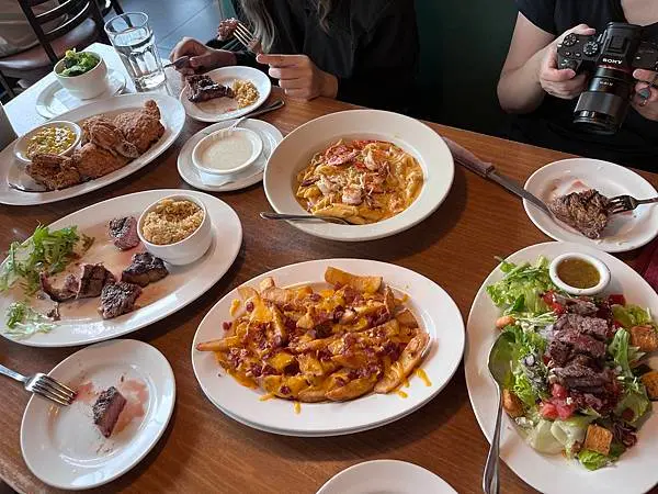 在台北我最喜歡的美式餐廳是GB去過幾次印象都不錯 餐點也都很好吃這天跟好友聚會約在德州鮮切牛排這間也一直在口袋名單內 終於有機會來品嘗囉(以下為碎碎念)話說這幾年我寫食記有些遇到瓶頸還是很愛吃 也喜歡寫 但總是少了些熱情常常回頭看以前的食記總能讓我捧腹大笑而現在的文章比較像是流水帳 少了很多溫度或許也會開始調整些方向 怎麼樣在分享美食時找回自己的熱情也很重要啊這天聚會的好朋友 是我生命中的良師益友這幾年我的心情過得並不輕鬆 身邊發生了很多事情一直在考驗我有時候會突然很徬徨不知道自己該怎麼往前走謝謝我的精神支柱 總是能給我穩定的力量人生很長 有時也會有波折 希望我可以堅定穩定的跨過去生命中的難關 餐前麵包(免費可續)這算是德州鮮切牛排的小招牌之一是餐前麵包 吃起來口感紮實 單吃就有點甜甜的旁邊的蘸醬有淡淡的肉桂味 但是我不是很喜歡覺得麵包單吃就很不錯了是會讓人可以一口氣吃上好幾個的美味 但會很撐就是了XDD 凱薩沙拉我個人就是一個到哪都愛吃沙拉的人XD就是表現很可以的凱薩沙拉醬汁夠多 生菜也夠脆 補充纖維質很棒!! 菲力牛排沙拉也是味道還不錯的沙拉但是上頭的菲力牛排口感實在有點太老了咬的我好辛苦啊!!!!!XD 辣味鮮蝦麵味道非常濃郁的麵食帶了些許的辣味 吃起來味道我非常的喜歡甚至覺得它的醬汁拿來沾麵包也很棒 肉醬起司薯條很厚重的一道點心上面的起司跟培根淋在薯條上面其實很好吃但這道真的要多人分食才行 很容易被擊倒啊!!! 德州炸雞是我喜歡那種炸雞外層的裹粉不會太厚重一咬下去滿滿的肉汁會流出來啊~~~ 肋眼牛排一直以來在美式餐廳點牛排通常我覺得表現都挺普通的但這天的牛排我有嚇到 比我預期的好吃太多了 配合友人點了七分熟(通常牛排我愛三分或是五分)七分熟對我來說雖然偏熟了些但這裡的牛排還是很軟嫩多汁 完全不會難咬甜度也很棒 個人覺得出乎我預料的好吃 四個人點了滿滿一桌當然是吃不完啦~~~但是打包就好啦!! 這天吃完印象真的蠻不錯的幾乎每一道都無雷餐點的口味跟份量我覺得也很實在平日中午還有商業午餐的討餐可以選擇價位上又更划算了以後除了GB外 這裡也會是我想吃美式時的好選擇囉!! …查看更多