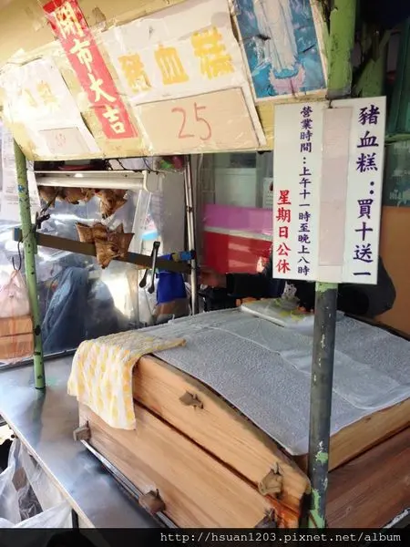 豬血糕這種台灣特色庶民小吃,喜歡大概就很喜歡,排斥的大概就很排斥。我們家雖然還蠻愛,但這種在路邊攤常可見到的銅板美食,說真的,我們也常會不小心踩到地雷。因此有時臨時想吃,但若是沒光顧過,且攤前又沒大排長龍的攤家,往往就會讓我們心存質疑。而今天要介紹這攤,我們一開始看到的感受就是如此…▲很不起眼的攤外觀,位於德惠街萊爾富門邊最近去台北市逛街,老婆忽然說想吃豬血糕,又說前一陣子看到電視上有兩位名人介紹,台泥集團前董事長辜成允先生,生前最愛吃德惠街上的豬血糕。接著她問我,德惠街在哪?!說真的我之前在台北工作多年,還真的不知道。查了一下網路地圖,才知道是位於松江路上,近建國交流道口的小街巷。▲價目表攤家只賣兩樣,就豬血糕和肉粽。▲蒸籠內的豬血糕與肉粽熱騰騰的白霧裊裊〜▲豬血糕浸醬沾花生粉先浸入攤家特調的醬汁,再取出沾上大量花生粉,撒上大量的香菜。▲豬血糕,外觀表面也撒了大量的香菜,店家加香菜的方式也不一樣,一面有、一面沒有。*這樣的做法,我們後來吃到後,讓人感覺有和一般不同的口感感受。▲豬血糕,剖面口感軟中帶Q而不爛,且有些許的鹹甜鹹甜醬汁味,加上滿滿的花生粉與香菜香,真是越吃越〝ㄕㄨㄚ、〞嘴。▲豬血糕,加辣加點甜辣醬,更增豬血糕的添風味~▲肉粽,外觀阿發有點餓了,於是順便買個來吃看看。▲拿掉粽葉的外觀如果要現吃,店家會拿掉粽葉,再淋上甜辣醬撒上香菜。▲肉粽內餡米粒分明口感鹹香Q彈,內餡有豬肉塊、花生、鹹蛋黃,以35元的價格來說,算是很真材實料~▲留影第一眼看到這攤家,我還問老婆是不是妳又說錯地址了,怎位於不熱鬧的小街巷內,外觀不怎起眼,攤前只陸續有些大概是附近的居民來購買…一開始怕踩到地雷,又是下雨天,我們在一旁的車上看了好一會,最後心想還是先買一支來嘗看看好了!沒想到,這的豬血糕口感雖不至讓人驚豔,卻是純樸傳統、扎扎實實,軟中帶Q而不爛,且有些許的鹹甜鹹甜醬汁味,加上滿滿的花生粉與香菜香,真是越吃越〝ㄕㄨㄚ、〞嘴的好滋味~或是攤家位處不熱鬧的街弄內,或是過於低調,即便名人推薦過或是食尚玩家介紹過,攤前也沒有任何宣傳與合照(大部分的攤家,早就會貼的滿滿滿吧!)也或許不會做生意,或許過於老實,或是單純只想做附近居民的生意…無論如何,是攤還不錯吃的豬血糕囉~…查看更多