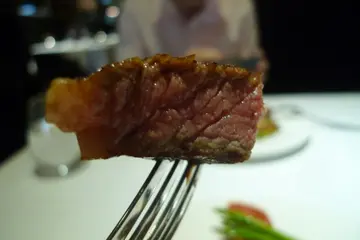 首先是地理位置絕佳 一出捷運站馬上找到再者為環境 因為是飯店附設餐廳,所以佔地十分寬敞簡單大方的招牌看板 依著餐廳方向望去,映入眼簾的是寬敞中庭,感覺十分清幽下階梯 望著騎樓噴發出來的水氣,讓原本燙熱的體溫瞬間down了些台階一偶放著思泊客餐廳的優惠版 黑角牛排館就在其一近日推出,周五限定 主廚套餐買一送一感覺挺超值的 節慶、祝賀日計畫來此吃一頓,非常不錯一入內,便看見招牌頭像擺設 這雕塑栩栩如生,似龍真牛以輪胎為材質 設計的十分別緻飲料櫃 選擇不少唷!!吧檯區 雖然沒有甚麼特殊擺設,但給人感覺簡潔大方,挺舒爽的冷藏熟成牛肉櫃 有別於坊間牛排品質黑角牛排館主廚精心獨門打造21天乾式熟成牛排烹饌方式歷經21天耗時等待 在嚴格恆溫、恒濕控管冷藏熟成室中妥善利用牛肉本身天然酵素與外在微生物作用 自然增添牛肉風味這等另類的前置處理方式 實在讓人玩味此為冷藏櫃中的其中一塊 表面乾黑的狀態,像是乾式熟成的成果第一次見到 視覺效果不是很好要不是店家對其美味極力推崇 我想應該不會有人想嘗試吧~紅酒櫃 美食配美酒,真的好想開一瓶呀~用餐空間 地毯、沙發& 寬桌子,再加上昏黃燈光,流暢的走道動線讓人座入其中 十足享受也有多人包廂區展示杯套組此次被安排在這種半獨立式座位區 真的很棒,很舒服黑角的服務人員 我覺得教育訓練還需加強此回用餐 員工帶位入座,上menu ~ok不過我們是平日午間造訪 黑角是有主廚精選午餐可選的除了正常菜單外 平日精選午餐他們隻字未提若不是N 事先已上官網得知 恐怕我就擅自幫他選義麵了精選午餐MENU 各自選完菜色後,上水黑角牛排館個人水費需加收80元 有聖沛黎洛氣泡水& 礦泉水二擇一也因為員工沒說,我們也沒注意看menu 現場就依員工說法花錢買礦泉水了雖然沒啥損失 但我和N 事後得知皆頗為懊惱的說因為我們都想選氣泡水~第一道 餐包上桌,附有美味沾醬分別為甜菜大根、奶油& 沙沙醬餐包三款 有原味、巧克力、玫瑰核桃玫瑰核桃 這款口感很不賴入嘴除了花果香充斥外 更有堅果提升口感好吃也健康 搭上三種沾醬甜菜根與沙沙醬清爽開胃 奶油香氣濃郁,各有各的好,都不錯原味 口感與上款挺像只是少了花香 味道較一般巧克力麵包 這款是當日最令我們稱讚的原本以為此款同樣小巧,外型內容一如前者 也是飽實無餡沒想到一撕開 驚喜藏裡頭竟然包了滿滿的起司內餡 溫溫熱熱的超好吃如此柔軟綿密 要命!!因此忍不住多追加了幾份再來上前菜 口碑卷提供,香煎干貝佐番茄鯷魚醬汁擺設挺漂亮的 盤中兩顆大干貝,撒了滿滿的魚子醬& 薄荷葉點綴看起來十分可口等不及!!速拍完趕緊開動 干貝鮮甜彈的口感,才入口就讓我喜愛到冒泡了這真的很美味 意猶未盡呀~精選套餐的前菜 雞尾酒蝦盤中擺設與香煎干貝佐番茄鯷魚醬汁很像此盤的蝦子雖然小尾不過新鮮 搭上周邊配料莎莎醬齊吃,清爽又美味義大利番茄蔬菜湯 偏酸,味道一般蔬菜量頗多的南瓜濃湯 這碗好喝耶~看似濃稠味道厚重的南瓜湯 入口是意外的清爽鹹中帶甜 湯裡無過多調味,天然果泥原滋味喝得出生菜沙拉 菜葉新鮮,味道一般般號外~ 店家現場活動凡用餐中上fb按讚 立馬送上香煎干貝佐番茄鯷魚醬汁我只能說,黑角你真的好大方呀~ ya....這一猶未盡的美味又能吃一次啦~前面幾道下來,肚子開始飽了 緊接著主餐來囉!!美國頂級肋眼牛排12OZ 好high 好大份厚實大塊的美味牛排 搭上多種鮮蔬菜,感覺超有份量超美味忍不住現切一塊自己先試 美味呀主廚推薦五分的熟度果然恰恰好 真的很佩服大廚的煎工這麼大片半熟的肉排 能完全不流血水且外層呈現焦香樣 裏頭肉汁還爆多這廚師功力 還真不是只有一個讚能形容的(是非常讚...)精選午餐的紐約客牛排 雖然這肉排份量不足肋眼牛排12OZ但店家給的也算是有誠意 夠讓男人吃得飽紐約客肉質不如肋眼般軟嫩 具嚼感,不過可以接受肉塊是越嚼越香 也不錯甜品 一盤三項,小小的看起來挺別緻的有布蕾、巧克力慕斯、檸檬口味馬卡龍布蕾,外層有香脆焦糖合著綿密布丁一起吃,好幸福巧克力慕斯,店家使用微苦的巧克力,口感細滑 含一口入嘴再喝個熱咖啡超享受的還有馬卡龍 入口即化的上下外殼甜味與夾層檸檬醬,極搭 張嘴咬入酸甜美味一齊釋放,好棒最後的飲品 冷熱咖啡,黑角有附送鮮奶讓客人自行調味唷~整個收服N 的心 只是黑角的豆子偏酸,我沒有很愛熱咖啡 也偏酸整體而言,來黑角咖啡館用餐的感覺非常好厲害的料理手藝、精緻的餐點 再加上舒適的用餐環境與桌邊服務讓我和N 渡過一個難忘的午餐饗宴 真的很棒查看更多