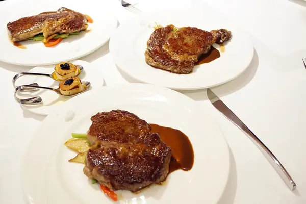 首先是地理位置絕佳 一出捷運站馬上找到再者為環境 因為是飯店附設餐廳,所以佔地十分寬敞簡單大方的招牌看板 依著餐廳方向望去,映入眼簾的是寬敞中庭,感覺十分清幽下階梯 望著騎樓噴發出來的水氣,讓原本燙熱的體溫瞬間down了些台階一偶放著思泊客餐廳的優惠版 黑角牛排館就在其一近日推出,周五限定 主廚套餐買一送一感覺挺超值的 節慶、祝賀日計畫來此吃一頓,非常不錯一入內,便看見招牌頭像擺設 這雕塑栩栩如生,似龍真牛以輪胎為材質 設計的十分別緻飲料櫃 選擇不少唷!!吧檯區 雖然沒有甚麼特殊擺設,但給人感覺簡潔大方,挺舒爽的冷藏熟成牛肉櫃 有別於坊間牛排品質黑角牛排館主廚精心獨門打造21天乾式熟成牛排烹饌方式歷經21天耗時等待 在嚴格恆溫、恒濕控管冷藏熟成室中妥善利用牛肉本身天然酵素與外在微生物作用 自然增添牛肉風味這等另類的前置處理方式 實在讓人玩味此為冷藏櫃中的其中一塊 表面乾黑的狀態,像是乾式熟成的成果第一次見到 視覺效果不是很好要不是店家對其美味極力推崇 我想應該不會有人想嘗試吧~紅酒櫃 美食配美酒,真的好想開一瓶呀~用餐空間 地毯、沙發& 寬桌子,再加上昏黃燈光,流暢的走道動線讓人座入其中 十足享受也有多人包廂區展示杯套組此次被安排在這種半獨立式座位區 真的很棒,很舒服黑角的服務人員 我覺得教育訓練還需加強此回用餐 員工帶位入座,上menu ~ok不過我們是平日午間造訪 黑角是有主廚精選午餐可選的除了正常菜單外 平日精選午餐他們隻字未提若不是N 事先已上官網得知 恐怕我就擅自幫他選義麵了精選午餐MENU 各自選完菜色後,上水黑角牛排館個人水費需加收80元 有聖沛黎洛氣泡水& 礦泉水二擇一也因為員工沒說,我們也沒注意看menu 現場就依員工說法花錢買礦泉水了雖然沒啥損失 但我和N 事後得知皆頗為懊惱的說因為我們都想選氣泡水~第一道 餐包上桌,附有美味沾醬分別為甜菜大根、奶油& 沙沙醬餐包三款 有原味、巧克力、玫瑰核桃玫瑰核桃 這款口感很不賴入嘴除了花果香充斥外 更有堅果提升口感好吃也健康 搭上三種沾醬甜菜根與沙沙醬清爽開胃 奶油香氣濃郁,各有各的好,都不錯原味 口感與上款挺像只是少了花香 味道較一般巧克力麵包 這款是當日最令我們稱讚的原本以為此款同樣小巧,外型內容一如前者 也是飽實無餡沒想到一撕開 驚喜藏裡頭竟然包了滿滿的起司內餡 溫溫熱熱的超好吃如此柔軟綿密 要命!!因此忍不住多追加了幾份再來上前菜 口碑卷提供,香煎干貝佐番茄鯷魚醬汁擺設挺漂亮的 盤中兩顆大干貝,撒了滿滿的魚子醬& 薄荷葉點綴看起來十分可口等不及!!速拍完趕緊開動 干貝鮮甜彈的口感,才入口就讓我喜愛到冒泡了這真的很美味 意猶未盡呀~精選套餐的前菜 雞尾酒蝦盤中擺設與香煎干貝佐番茄鯷魚醬汁很像此盤的蝦子雖然小尾不過新鮮 搭上周邊配料莎莎醬齊吃,清爽又美味義大利番茄蔬菜湯 偏酸,味道一般蔬菜量頗多的南瓜濃湯 這碗好喝耶~看似濃稠味道厚重的南瓜湯 入口是意外的清爽鹹中帶甜 湯裡無過多調味,天然果泥原滋味喝得出生菜沙拉 菜葉新鮮,味道一般般號外~ 店家現場活動凡用餐中上fb按讚 立馬送上香煎干貝佐番茄鯷魚醬汁我只能說,黑角你真的好大方呀~ ya....這一猶未盡的美味又能吃一次啦~前面幾道下來,肚子開始飽了 緊接著主餐來囉!!美國頂級肋眼牛排12OZ 好high 好大份厚實大塊的美味牛排 搭上多種鮮蔬菜,感覺超有份量超美味忍不住現切一塊自己先試 美味呀主廚推薦五分的熟度果然恰恰好 真的很佩服大廚的煎工這麼大片半熟的肉排 能完全不流血水且外層呈現焦香樣 裏頭肉汁還爆多這廚師功力 還真不是只有一個讚能形容的(是非常讚...)精選午餐的紐約客牛排 雖然這肉排份量不足肋眼牛排12OZ但店家給的也算是有誠意 夠讓男人吃得飽紐約客肉質不如肋眼般軟嫩 具嚼感,不過可以接受肉塊是越嚼越香 也不錯甜品 一盤三項,小小的看起來挺別緻的有布蕾、巧克力慕斯、檸檬口味馬卡龍布蕾,外層有香脆焦糖合著綿密布丁一起吃,好幸福巧克力慕斯,店家使用微苦的巧克力,口感細滑 含一口入嘴再喝個熱咖啡超享受的還有馬卡龍 入口即化的上下外殼甜味與夾層檸檬醬,極搭 張嘴咬入酸甜美味一齊釋放,好棒最後的飲品 冷熱咖啡,黑角有附送鮮奶讓客人自行調味唷~整個收服N 的心 只是黑角的豆子偏酸,我沒有很愛熱咖啡 也偏酸整體而言,來黑角咖啡館用餐的感覺非常好厲害的料理手藝、精緻的餐點 再加上舒適的用餐環境與桌邊服務讓我和N 渡過一個難忘的午餐饗宴 真的很棒…查看更多