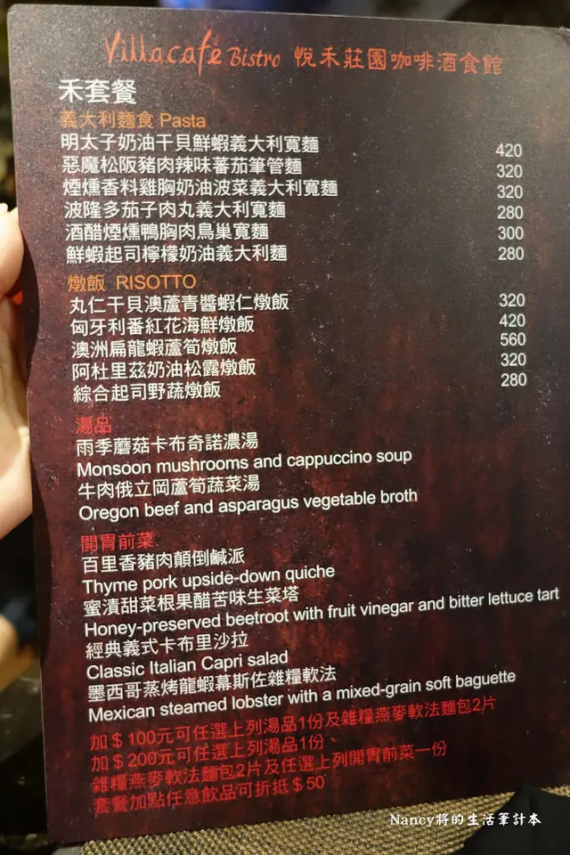 悅禾莊園 義法餐酒館 (台北) 網址: https://s.openrice.com/cHRSm025yW200 地址: 台北大安區光復南路280巷32號 電話: +886 0227210076