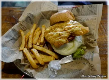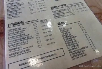 1/9(六)打嗝吧BURP BAR 高雄市前鎮區修文街134號 07-3388890 營業時間:09:00~16:00/每週一公休 臉書 在布丁那看見這間打嗝吧的漢堡,莫名的被強烈吸引,也許是因為很久沒吃到美味大漢堡,所以在臉書私訊留言訂位,放假日就來了,這裡靠近勞工公園,假日有花市,我和朋友還滿常來逛的,所以吃完早午餐再順道去逛逛囉!喔!不!應該是本來就要去逛花市,順道吃早午餐啦!XD 這裡很難停汽車,我們繞了一圈又繞回來,決定停門口。假日生意很好,我們入坐後沒多久,其它桌也陸續有人坐,一進門的左手邊有一大桌和兩個人的高腳椅座位,其它就是兩人桌和四人桌,兩人桌的空間很小,如果點的東西較多可能就放不下了。 開放式的廚房,一共五個人,看起來像是家人,一家人一起打拚的感覺很棒。加了香草和檸檬片的開水請自取,餐具也是喔!刀叉湯匙都蠻有質感的,不是一般較便宜的款式。本以為還有二樓,原來上了樓梯只有一間廁所,假書牆為環境加了不少分。沒了剛開幕時的打折,現在的優惠是上面的方案。 菜色除了早午餐常見的拼盤,還有轟蛋,兩者沙拉或優格可擇一,價位從190元到250元之間,義大利麵和燉飯價位是180元到250元之間,焗烤加40元,只有附咖啡或紅茶,全部餐點換其它飲料可折抵30元,漢堡價位從180元到220元之間,也是只有附咖啡或紅茶,更換飲品可折抵30元。 打嗝吧的水杯好可愛,色彩很糖果。點餐附的紅茶,不大杯。招牌打嗝餐190元,有三片熱煎鬆餅及鐵鍋上有德式香腸、炒蛋、培根及薯餅,炒蛋有注文要熟一點,不過還是很滑嫰,不會太乾,薯餅外表脆脆的好好吃喔! 沙拉擺的像個美麗的盆栽,配色豐富鮮艷,可是我不太喜歡沙拉醬,吃起來像是優格加了檸檬,有點澀澀酸酸不太合口味,份量非常少,所以我們又要了一次沙拉醬。濃湯非常好喝,喝的出很天然的馬鈴薯泥沙沙的口感,味道也很棒。打嗝經典呷飽堡200元,就是它了!就是被它給霞到,其實份量比照片上看到的還少一些些,個人是沒有飽到打嗝啦!偷偷的跟你們說,偶吃完還只是七分飽而已,哈哈!不過這漢堡真的超級好吃的,裡頭的配料多一分及少一分都無法達到這美味,真是搭配的剛剛好,兩片長長的培根+上手打漢堡肉,愛吃肉肉的我太尬意,然後那片半融化的起司及生菜把美味挺到最滿了,大口咬下只有不停點頭,這好好吃丫~(內心已在灑花奔跑ing)漢堡堡還貼心的附上一雙手扒雞手套喔!不會弄髒小手手,又能大口咬,超過癮的。還有,還有那薯條也是啵棒,冷了還是外酥內軟,很涮嘴的就把它完食了。 可可卡布奇諾110元,點餐換折抵30元,這杯端上來時,心裡有抖了一下,因為好小杯喔!感覺喝不過癮就沒了XD,原本是畫巧克力卡布奇諾,正疑惑可可和巧克力有什麼不同,問了老闆得到解答,可可帶點苦味,巧克力是甜的,馬上改變心意注文可可卡布奇諾,喝了一口咖啡是溫的,還真有點小失落,要喝到燙口的咖啡比要喝到燙口的濃湯難上許多丫~~~食後心得:打嗝吧的餐點大至上都很合味口,價格也不算太貴,如果熱飲杯子能換更大杯就更美好了,哈哈哈!查看更多