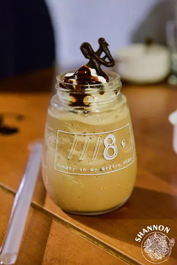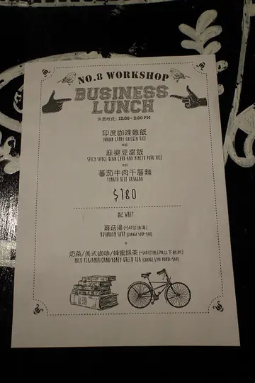 前陣子和朋友聚會不知道去哪邊,想到可以待比較晚又不限時的且東西又不錯吃大概就是No.8 Workshop 捌號工作室!第一次到達門口其實我有點傻眼內心是有些後悔的,大概就是因為看到他有一區吸菸區,類似茶街那樣我不大喜歡,但進去感受就不一樣了!進了大門還有一個室內的門,整體感覺像是走文創、復古混搭的風格裡頭擺設很多牆壁也是很豐富花俏,一樓的座位有限所以來這邊還是提早訂位比較好店內提供了些桌遊可以租借(如有需求請詢問店家)而遊樂器我就不清楚可不可以租借玩樂了此外還有販售復古的擺設、小物連廁所前也可以這麼花俏的擺設!吧檯旁的公仔擺設蜂蜜咖啡 (140元單點價)蜂蜜拿鐵還可以接受,因為咖非本身偏苦所以蜂蜜多了些風味和甜度綜合了苦味套餐的湯分別為奶油洋蔥湯和南瓜濃湯(單點價 120元)我覺得奶油洋蔥湯口味很濃厚我喜歡,洋蔥軟嫩入口即化我喜歡,一下子就喝完了!南瓜算濃郁愛南瓜的人一定喜歡,但如果像我沒這樣愛的話我會覺得有點單調,個人會比較喜歡洋蔥!墨魚墨魚汁義大利麵/飯 260元燉飯帶有米芯是我喜歡的,S覺得味道是挺不錯的且不時會吃到醃番茄提味,整體鮮且墨魚口感很不錯呦!並不會炸得很油膩~蟹棒明太子奶油義大利麵 250元朋友點用的其實我也考慮想點這個,醬料較多且明太子也在嘴裡多了些口感,奶香濃度剛好麵條有彈性隨著醬汁一起入口份量搭起來似乎很OK,再多的話可能會膩口!火辣XO醬鮮蝦義大利麵 280元我總覺得這個分量看起來比較多,蝦子又挺多尾的整份和價格一起看的話覺得很划算,XO醬鹹香夠味但我希望可以在辣一點(我私心愛辣),不過整體味道已經夠重了蝦子吃起來微脆鮮度很不錯,麵條的口感適中整體是表現得很不錯呢!水果茶(單點180元)果醬搭起來整體還算不錯,比起後面的氣泡水出色許多!至少喝得到紅茶及果香氣味朋友也不知道點了什麼和我講說是青蘋果氣泡飲之類的喝起來就是氣泡飲與檸檬及薄荷的香氣而已,表現很一般!泰式打拋豬炒讚岐烏龍麵 260元我曾經叫過外送這一道料理我覺得很好吃,不過我知道外送悶了一下才到手難免影響口感,所以我能接受代表現場一定也是很不錯的!所以就推薦給朋友,朋友也覺得非常好吃可惜分量很少!微酸香辣的打拋豬肉吃得挺過癮的,搭配上讚岐也是我第一次看到,老闆的創意讓這道料理特色又美味!摩卡冰沙法式紅酒牛肉義大利麵/燉飯 280元朋友點用的看似料還算多不過其實男生根本吃不飽,口味上燉的蠻香的,朋友覺得還不錯吃!軟殼蟹海鮮比薩 280元真的可以吃到軟殼蟹,薄皮比薩整體口感挺酥脆且不會油膩蠻不錯的,朋友們很滿意這個料理!拿鐵(單點120元)S點的我喝了一口就是苦香氣味,我自己是不太喜歡但是奶泡打得很細緻挺利害的!…查看更多