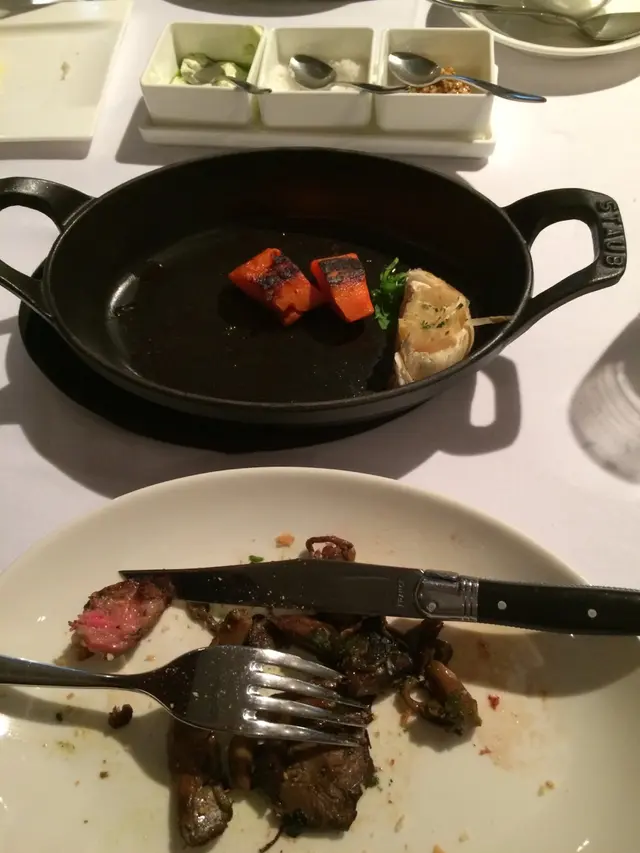 九月替好友慶生 信義區的牛排館我們幾乎都嘗試過了才想起還沒嘗試過教父牛排Top Cap Steakhouse位在新光三越A4 5樓訂位時有說是慶生~店家說會提供小蛋糕 點完餐以後就上了麵包目前覺得牛排館提供的餐前麵包 都有一定的水準表現都蠻不錯的~~這裡的算是偏歐式麵包,口感紮實好吃!! 開胃菜-溫煮龍蝦(另加價600元) 半隻的份量 味道卻是讓人非常驚喜龍蝦肉Q彈 調味非常讓人喜歡壽星吃得很開心啊!! 開胃菜-香草白蘭地田螺 我選的田螺也很棒田螺口感QQ的 醬汁口味蠻重的所以搭配著附上的麵包很搭開胃菜就讓我們很驚喜啊!! 義式蔬菜清湯這湯我看起來就沒食慾XDDD結果壽星說 味道其實很豐富 是好喝的湯品好吧~~我外貌取人我的錯!!哈哈哈 牛肝菌卡布奇諾滿滿牛肝菌香氣的湯這款我覺得好好喝 我非常喜歡 準備上主餐囉!!三種調味依據喜好來搭配 \ 肋眼菲力牛排(1250元+10%)服務生建議的五分熟 都不帶血這款口感比較有咬勁 我個人還蠻喜歡的 菲力老饕牛排(2800元+10%)這款的嫩度比起另一款更嫩但是壽星比較喜歡有口感的牛排~~哈哈哈我個人覺得兩款都不錯老饕的肉香氣我覺得更足 就是看自己喜歡怎樣口感的牛排來選擇囉! 另外可以搭配配菜我們選了奶油玉米跟炒蘑菇表現都蠻不錯的 甜點我覺得甜點算是表現最弱的部分XDDD 祝我的好友生日快樂!!! 這天吃完壽星非常的滿意讓我覺得很開心 畢竟主角開心我就開心了 哈哈哈整體的用餐氛圍我很喜歡服務上我覺得就是中規中矩 沒有特別的印象餐點我覺得整體表現得都很好會讓人想要再訪的餐廳也分享給找慶祝餐廳的朋友唷!^^ …查看更多