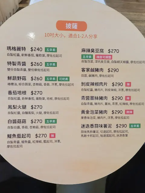 這家窯烤披薩的外觀頗不起眼,初訪時開車一度因為沒見到招牌而錯失,二訪散步前來,總算找著。店家入口不在文化七路上,而且有些隱晦。 這裡販售各式披薩為主,些許輕食及飲品。網路評價多推麻辣臭豆腐披薩及鹹豬肉披薩,照單全收。麻辣臭豆腐披薩 270元 客家鹹豬肉披薩 290元 雖名為「柴燒窯烤」披薩,但吃來不像「MONKEYMONKEY」披薩有明顯窯烤柴燒的香氣。餅皮為薄餅式,帶嚼勁,非溼軟也非脆口風格。 麻辣臭豆腐的臭豆腐味重,臭豆腐很乾,起司主要提供牽絲效果,滋味除臭豆腐外,大抵來自酸甜的泡菜,整體無絕搭或驚豔感。辣度不低,但沒什麼麻香。 客家鹹豬肉的鹹香溫和,反倒是蒜苗和起司組成滋味主體,倘若以辣油輕灑,說不定能有些加分效果。蒜香薯泥薄餅 120元 烤雞翅 120元/6入 美式咖啡 60元 薄餅賣相如前面的披薩般,只是邊緣處的餅皮口感會再硬脆些。薯泥提供綿密口感,蒜香有,但私心希望調味再重些。 烤雞翅為本日最愛,肉質軟嫩,醬汁夠味,吃來過癮。 咖啡照例因不愛而未嚐,只知道非酸咖啡。 整體而言,無論是餅皮或餡料調味,「MONKEYMONKEY」都相對較貼近個人喜好。原推薦披薩口味尚抄得「緹魚藍起司」,留待大家親身感受。…查看更多