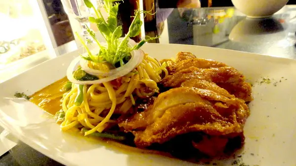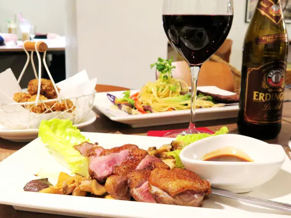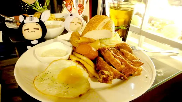 師大夜市商圈, 以前好常去的地方, 吃個路邊攤牛排 ( 它已經不是路邊攤牛排了) 吃個小攤賣的生煎包 ( 它也有店面了)然後到水準書局買幾本超便宜的書 ,還會被老闆用低價推薦多帶幾本這種生活也很不錯, 這次去覺得很多地方變了不過也還是有很多新的有趣的店比如說這間Bamibi Bambi Brunch它的位置就在水準書局後面的巷子, 轉過去不遠就會看到這塊室外區座位我蠻愛的, 不過這天下雨又不是白天, 只好作罷另一區這是棚子架出來的座位區裡面的空間也算寬敞, 厚實的木桌與還蠻舒適的座位是我所愛剛提到的半戶外區的沙發, 頗華麗●濃情巧克力, 排餐附的湯和麵包蠻濃郁略甜的巧克力, 我個人也蠻喜歡的, 友人喝來看來也頗愉快甜食當作開頭總是不錯這是當天的南瓜濃湯,不像傳統的南瓜味重還帶點甜味這湯較鹹一些也不是太濃, 不過搭配麵包還不錯附餐的麵包, 盤子蠻漂亮的●去骨雞腿排義大利麵與起司肉醬炸薯條去骨雞腿排義大利麵, 這道是帶辣的麵條部份是很傳統的香蒜辣椒麵( Aglio e Olio)雞腿的部份炸的不錯,稍油些, 但香酥夠味麵條部份稍嫌過辣, 辣味把橄欖油與蒜味壓制掉了麵則偏台灣口味稍軟起司肉醬炸薯條非常肥美的一道,蕃茄肉醬稍酸, 但起司味濃厚吃多了熱量可很高後面是各種醬料, 等等吃牛排要用●12 Oz 紐約克牛排(五分熟)先和其他餐點來個大合照這塊牛排的份量無庸置疑應該是很標準的12 Oz五分熟, 肉色粉紅, 依口感來說推測是使用舒肥手法作的如果上色稍微在煎焦一點會更好肉的話鮮嫩但欠點特色以份量來說 愛吃肉的人會很開心的●反烤鳳梨蛋糕不錯的小甜點, 糕體軟嫩, 微酸●St-Feuillien’Saison雖然我一般很少喝啤酒但不是我不能喝而是我本身會對啤酒過敏的關係, 這天因為體驗因素得選酒友人這天身體不適不能喝我就自己上了這隻是比利時的農村啤酒( Farmhouse ALE ),以頂層發酵方式製酒, 裝瓶後再在瓶內二次發酵口感微甜, 不苦, 非常順口氣泡綿密且很多很多倒滿一杯幾乎都是氣泡等它略消後再繼續倒Bambi 很認真, 啤酒杯先冰過然後選高瘦杯讓這啤酒氣泡更持久如前所述, 微甜, 很香, 然後很順口有人說它會帶點辣, 是完全沒喝出來就是好喝 , 雖然我喝不多又開始過敏了(笑)●總評環境很舒服, 空間感好給人很舒適感覺的咖啡廳位於師大商圈的巷弄內車子不多我會喜歡來這坐坐●菜單…查看更多