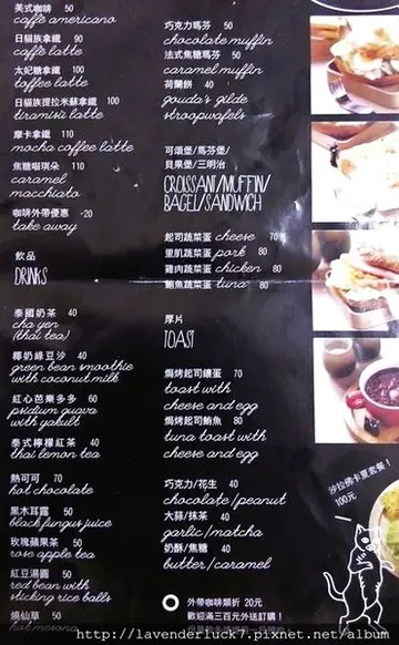 貓咪咖啡廳我終於來哩~!!!這次要帶大家到松山南京的日貓族雖然我自己家裡有兩隻肥肥的臘腸,不過對貓咪的愛還是很旺盛啊~~從捷運松山南京站出來大概還要走10分鐘,在巷子裡比較容易錯過當你看到 a room to swing a cat 時很明顯表示你成功到了可愛的貓頭旗幟已經讓我迫不及待的想去騷擾貓貓們了>///<日貓族以提供輕食為主,所以很適合來與貓咪過個悠閒午後進了店裡還沒看到動來動去的貓就已經可以在各個角落發現他們靜靜的蹤影先點餐結帳,低消$50不收服務費,還有免費wifi喔!Menu在這裡甜食點心,飲品,冰類,可頌,貝果,三明治,厚片一應俱全滿$300可外送,外帶咖啡類還再抵$20元喔!店內其實座位不多,但都很寬敞,不擁擠就沒有太大壓力,而且不限時可以悠閒的聊天我自己本身是不太愛吧台座不過!!在日貓族,這裡其實才是VIP座上座!為啥哩?因為......我們的栗子女王其實最常在這溜搭?鏘鏘~~!就是這個傲然不屑於俗世的背影!好啦其實我不知道牠是不是心情不好~因為牠本來在睡覺,是老闆把牠抱出來給我玩耍XD所以牠就瀟灑的不甩我了QAQ不清楚牠是男生女生,但因為個性太女王所以才稱牠女王喔~栗子的眼睛是漂亮的碧綠色而且感覺其實牠還是滿喜歡跟人互動的啦聽到快門聲會一直回頭,只是有點傲嬌...瞇眼睛了阿啊啊~~~(你是變態嗎?不知道是不是想喝水了哩?不過因為是客人自取的水杯,如果會介意動物觸碰到的人可能無法接受來給荷蘭餅一個特寫這時候我覺得好不好吃是其次,因為...栗子女王好像超愛阿!!!!看到牠霸氣的推薦,我後來也點了一片來嚐嚐然後呢?就沒有然後了...女王就回去睡回籠覺了TAT不禁讓我以為牠的任務就是出來叫我點荷蘭餅嗎==起士蔬菜蛋三明治$70喔喔連木盤都刻有招牌貓貓感覺很精緻啊~主要醬料是酸黃瓜醬與番茄醬所以吃起來滿清爽的,生菜番茄洋蔥都挺新鮮悶熱的天氣吃既有飽足感又不會太有負擔鮪魚蔬菜蛋可頌堡$80可頌的麵包跟我所想得不一樣,吃起來沒有可頌的層次感,比較像一般麵包芥末酸黃瓜醬與鮪魚罐頭搭配,整體偏酸我個人是喜歡沙拉+鮪魚所以就不太習慣焗烤起士鑲蛋$70漂亮的黃澄澄金燦燦一片與濃濃起士香就很吸引人了!現烤好的起士還絕對要會牽絲你們說是不是? 所以我就犧牲一下餐點的色相來證明證明看看這Q黏熱騰的焗烤與厚片非常的如膠似漆啊!不過光這樣可沒這麼好唬弄我~蛋呢?!怎麼沒看到蛋?!!原來所謂的鑲蛋是藏在了厚厚起士底下而且還不是會流蛋液的那種熟度,比較偏糖心的感覺泰國奶茶$40提拉米蘇拿鐵$100感覺比較像摩卡 杯墊竟然也有可愛的喵咪啊!!荷蘭餅$40/片其實這應該滿常見的,但我是第一次知道原來他的吃法是這樣!荷蘭鬆餅中間的麥芽糖冷卻吃會有黏性也比較甜用熱水氣蒸熱後就變得稍微濕軟,黏性也沒那麼強肉桂味仍然香香的,但我個人喜歡常溫的口感巧克力厚片$40/藍莓瑪芬$50 巧克力醬吃起來是金莎的味道,所以有種榛果香藍莓瑪芬很大一顆,蛋黃味道滿濃郁的口感比較鬆軟而非扎實抹茶紅豆雪花冰$100非常大一碗,青綠的綿綿冰本身就是抹茶冰抹茶味微苦香濃,不會有假假的香精感淋上甜甜的煉乳與顆粒分明的紅豆,冰涼沁脾又不甜膩,兩個人合吃非常去暑氣! 日貓族地址:台北市中山區吉林路26巷21號1樓電話:02-2537-6885其他好吃好玩的: ♥淡水托斯卡尼尼N訪 ★龍都酒樓--人氣名鴨! ☆曼咖啡台北光復北店 13道菜攻略!! ☆Tino's pizza ♥In% Hair & Café 療癒喵喵拉花 大份量鬆餅塔 ★中山新丼--人氣創意丼飯! ♥信義安和小熊義廚房 ☆桃園宴川秋創意‧麻辣 ♥CRONUTT千層口感東區必買甜甜圈! ♥天糖時尚燉奶甜品--養顏午茶時光 ★亞尼克夢想村--美式派塔專賣 ★淡水英國奶奶-道地potato ☆La Creperie Taipei 正統法式薄餅 ♥唐心饌手作布蕾-自然健康の茗茶蔬果風味 ☆Unicorn法式甜點爆米花 ★大安Kafemera-深度咖啡之旅 ♥東門永康IOU鐵觀音珍珠 草莓拿破崙♥信義幾米公車--一起來尋回記憶之旅吧! ★信義Micasa Dolci Patisserie 蜜膳屋 ☆MooCup Ice Cream 沐卡即冰 ★ML美綠-全豆飲健康廚房! ★台電大樓赤初-杭州酒釀麻辣麵食旗艦店 ☆The Owl 敖唷 - 韓式湯飯專賣 ♥劍潭咖啡弄-飽足感輕食 ♥The chips美式餐廳(光復店)--超驚人漢堡堡 ★Queens Cuisine 皇后美食館-美式吃到飽完整菜單附 ♥托斯卡尼尼進駐淡水!! ♥京站-開飯川食堂 ★三芝番婆林巨無霸牛排 ★Pick 屁渴-特色炒泡麵+烤黑糖奶茶 ☆信義pond burger cafe ♥淡水媽媽嘴咖啡-隱身樹林的幽靜 ♥三芝海濱 villa sugar ♥三芝伊亞咖啡--萌翻了草泥馬! ★iCookie私房手作--用心小糕點(台北杭州旗鑑店) ♥台中海賊王彩繪牆(9/11最新)+合作社吃冰 ♥三芝高CP越南小棧--最新高清版! ♥大直YELLOW LEMON黃檸檬-培根冰淇淋超cool!! ☆北車卷卷家手工蛋捲(國光西站門市) ☆五股stove義式鄉村義大利麵 ☆中央廣播電台員工餐廳-山東燒雞(永寶餐廳) ☆日安咖啡 Cafe Sole ☆東區OVOV 義式手工冰淇淋 ♥台中必訪--太初麵食 ☆台中西區Traveling Time-旅行食光 淡水米特食堂超大義式肉丸 ★超夯8%冰淇淋 ☆日月潭富園小吃 ♥太春小館-日本料理in寧夏 ★Cadeau可朵法式甜點(京站) ★妖怪村x3D貓村! ♥三芝小豬 ☆玩水去!龍洞四季灣 ★in石窯屋的春天草莓饗宴 ♥阿里郎村落-頌伊炸雞啊!! ☆淡水彩拉麵-超值排隊名店 ♥N訪名單--旅人咖啡 ♥宜蘭高CP金澤滷肉飯+春記麥芽酥 ♥高雄