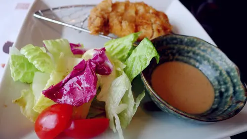 我們到二樓的竹林亭用餐。這是1010元的山藥水果和風沙拉。我一直很喜歡酸酸甜甜的油醋醬,這道水果也很豐富。1380元是紫山藥、鮮蝦與栗子。接下來我們都混搭一起吃【和風酥炸豬排果醋】旁邊是芝麻醬,很清淡。從過年開始雖然有一道道的年菜,但我還是喜歡這樣清脆簡單的蔬食。這道上桌時我們有點詫異? 怎那麼小塊?哈哈!>"<下面這道原本是生魚片,我們請服務生先幫我們烤過,其實烤的半生不熟(約六、七分)那時的口感最好,不會太生腥也不會有哇沙米的嗆辣,對於不喜歡吃生食的人,輕微的烤過一下,再灑點胡椒粒與刷上醬油,口感真是不錯哩!霜降牛肉小火鍋,服務生端上來時,有沒有看到材料都快滿出來了,不過別擔心也不須要去翻攪,陶鍋的特色是會讓食物滿滿沉浸下去,而且也不會煮的焦熟,等到材料都陷進去以後就可以開動囉!照燒蜜汁水晶中捲,端上盤來的中捲香氣四溢且口感彈性十足,很有嚼勁且越嚼越香Q。小肥牛肉岩石炙燒,聽到牛肉在石盤上喀吱喀吱的聲響,牛肉的油脂慢慢溢出,烤的剛好的牛肉好吃極了。手工鮭魚香鬆御蒸飯。已經煮的差不多的霜降牛肉小火鍋,搭配白菜與香菇還有金針菇等蔬菜,湯頭清淡別雅。飯後的甜品。這樣吃下來很是剛好。現代人不需要大魚大肉,也不要吃的太油膩。…查看更多