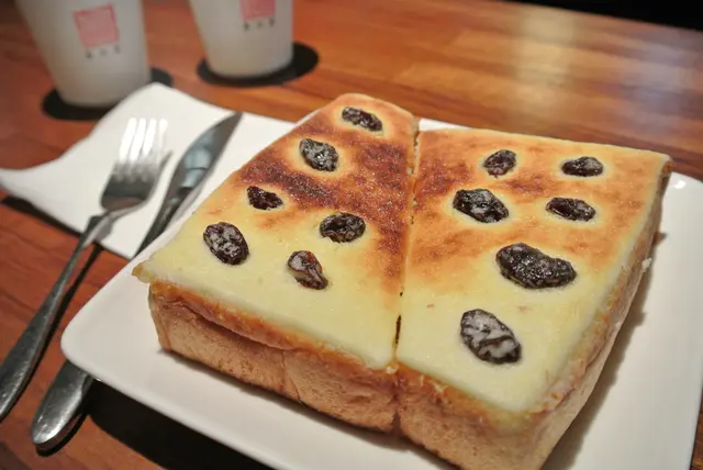 此店獨幢四層, 裝潢都好有中國的古典風韻, 牆上放了不少中國紫砂茶壺的擺設, 裝潢更用了落地玻璃增加了不少的空間感, 窗外更可以觀賞綠意幽靜的公園, 寫意悠閒的時候更享受一杯優質的珍珠奶茶真是人間享受那時候是早餐時份, 早餐時份會由(8:30am-11:00am)有四款選擇都是收台幣$120, 或可以任點一杯飲品即可優惠TWD$55, 即是TWD$55可以有一份早餐, 只是飲品收正價, 真是好抵食 , 之後order了一杯珍珠苿奶, 即是綠奶茶加珍珠TWD$75, 而我order珍珠奶茶都是TWD$75我們order了兩份早餐分別是葡萄奶酥吐司+荷包蛋+時令沙拉及台式蘿蔔糕+荷包蛋+時令沙拉(每份TWD$120), 葡萄奶酥吐司最好食, 烘得金黃鬆脆好奶酥香,色澤鮮豔, 脆口甜美,提子更是大粒,台式蘿蔔糕如果煎耐d會仲香口, 更可以蘸上甜酸汁+蒜香辣汁,食落倍感滋味, 荷包蛋煎得剛好而且加了青蔥, 不會太熟而且有醬油可以撈蛋食