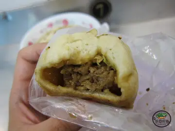 景美上海生煎包位在景美夜市商圈內晚上的時候來 總是會看到長長的人龍在排隊為的就是這一顆10元的美味生煎包因為排了快20分鐘 所以一口氣買了5顆一口咬下 果然好吃呀~肉汁豐富飽滿 調味也恰到好處包子內部吸附肉汁的皮是我最愛的部位兩個人一下就把5顆吃個精光本來還想再買一些回家當早餐但看到那長長的人龍 還是下次再來一次買多一點吧