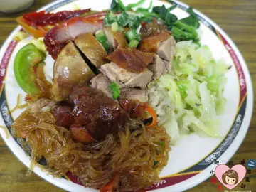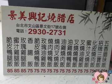 猜猜看這樣子的招牌三寶飯內容要多少錢呢?只能說時機歹歹的時候一定要學會顧好自己荷包聰明花,我在景美捷運站的「景美興記燒腊店」實踐天龍國裡的小資主義現在因為進修的緣故,只要沒有偷懶要奮發向上的時候,景美捷運站也變成我的地盤老早就用舌尖先去拜過碼頭─景美夜市了XD某天快中午被我瞄到有家招牌小小的興記燒腊店看起來人還不少11點開始營業才沒多久就像這樣一直有人排隊買飯,這代表一件事:有人在排隊,代表這家店應該還能吃(喂~這什麼奇怪結論?)個人還滿愛吃燒腊飯,甜甜又鹹鹹的醬汁、飽滿又分明的米飯還有好吃的臘肉是我的天菜看到老闆一直咻咻咻地忙著剁肉,肉肉們看起來好好吃,根本在呼喚我!現在把鏡頭再跳到老闆娘,闆娘的手也一直沒停過不停的地夾菜供給內用與外帶的客人,速度超快的,害我邊拍照邊皮皮剉因為很忙,所以注意事項請看告示板當個乖客人,反正互相體諒,用餐才會愉快嘛!這裡的配湯與飲料(有糖綠茶)自由取用有糖綠茶就是一般小吃店常用的糖水味,普通倒是今日配湯是紫菜蛋花湯用料還滿有誠意的,撈起來滿滿的紫菜與蛋花,味道清爽好喝基於肉食主義者外加小資女的歐巴桑性格作怪想知道燒腊店的功力還有滿足自己吃肉的慾望,第一次覓食我都會點招牌三寶飯,一吃就知有沒有?叉燒、油雞、烤鴨三種欲望,一次滿足,興記出奇蛋!三種主菜外加四種配菜:番茄炒蛋、菠菜、粉絲還有高麗菜話說滿滿一大盤送上桌有讓我驚到說好的飯呢? 真的被配菜和主菜蓋滿蓋到快要不見了!!! 難道這就是傳說中的港式蓋飯嗎? 真是太有誠意了這個分量應該普通女生都可以吃得很飽,男生食量來吃的飽度應該也還OK而且我也很少看到一般的燒臘便當店算敢給的油雞給了一整隻棒棒腿的份量,吃起來鹹度適中、軟嫩而不膩好入口烤鴨的份量也很夠意思,口感烤得微脆、微多汁,吃起來還算軟,還算有咬勁吃得到肉汁牙套妹最怕的鴨肉死硬卡齒縫這回事也沒發生一整塊切塊的叉燒肉更是吃得我心花怒放我最喜歡鹹鹹又甜甜的叉燒肉,吃起來軟硬適中就像肉乾零嘴一樣的可口,會忍不住一吃再吃配菜的番茄炒蛋、菠菜、粉絲還有高麗菜吃起來也還不錯,不會過於油膩而且給的份量不少,菜吃起來也還算嫩番茄也不會太酸,不過口感偏淡,喜歡再更甜一點的勾芡連米飯都是我最愛的粒粒分明口感,撒點蔥花和醬汁,色香味俱全(((下次醬人要叫老闆幫我多淋一點醬)))雖然比不上高級港式名店的精緻度但以飽食又好吃的定義來說有及格這是我吃完覺得CP值很厲害的小店,尤其是當你看到價目表就會明白: 除了玫瑰油雞腿、蜜汁雞腿飯、脆皮鴨腿飯這三種算是肉腿精華的主餐比較貴可以理解其他一律75元,這根本是港式快餐中的平價便當啊!難怪一堆人都叫好多便當等著外帶小資主義,就從覓食作起! |店家資訊|景美興記燒腊店地址: 台北市文山區景文街17號右側(景美捷運站1號出口背後5分鐘)景美興記燒腊店電話: (02)29302731…查看更多