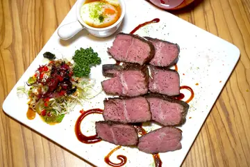 中正紀念堂站的白天很熱鬧、夜晚相對寧靜附近厲害的餐廳都是老字號的名店、想要吃一點家常、全家都可以享受的家庭式日式洋食現在有蠻不錯得選擇、份量大而且價格親切晴天廚房共有兩層樓、一樓以兩人及四人座位為主燈光很溫馨、木質傢俱搭配軟沙發座椅相當舒適 隱藏版的二樓像是日式小閣樓、座位更多、而且是小家庭都可以容納靠近窗戶的座位區、可以容納八個人、中午的採光特別好二樓可以包場開同學會、同事用餐、家庭聚會都推薦點餐請先到櫃台結帳、現點現做、出餐速度並不會很慢日式洋食少不了的酥炸可樂餅(一份為兩片)南瓜風味的可樂餅吃得到新鮮的南瓜丁、綿密而不油膩單純感受天然風味酥脆像是點心、小朋友都會喜歡炸廣島牡蠣(每一份為3顆)麵包粉的外皮好香酥、裡頭的牡蠣很新鮮肥美度因季節而異沾上日式炸物用醬料風味提升日式洋食必吃的當然還有咖哩以芋頭融入咖哩中、上桌的鐵盤上咖哩融合著芋頭的風為三尾肥美的炸蝦天婦羅(使用天使紅蝦)每一隻都很平均碩大晴天廚房的咖哩套餐可以調整辣度套餐附贈泡菜(台式、韓式、黃金泡菜三選一)簡單的日式家庭料理、在晴天廚房都品嚐得到重點是價格很親切天婦羅炸蝦裡頭還有酥炸金針菇花、香菇、糯米椒、還有野菜咖哩醬沾著白飯、厭食的小孩都會大口扒飯日式料理中少不了的烤魚、晴天廚房推出的厚片烤鮭魚定食這份鮭魚碩大到單吃就可以飽足鮭魚肉烤到魚皮很酥、魚肉夾起感受到扎實上頭灑上海苔粉與蝦卵、每一口都是海味魚骨頭很少、小孩子怕魚刺都可以從鮭魚開始babe的最愛還是鰻魚飯因為鰻魚飯的日式便當盒打開有一種真的到日本的感覺鰻魚的誠意在打開便當盒就會發出“哇”的聲音滿滿的照燒風味鰻魚搭配辣味泡菜(韓式)超級厚實的鰻魚、用兩隻筷子插起~超過癮的鹹甜的鰻魚、搭配醬汁、底下熱呼呼的米飯一口吃下超級過癮~價格真的很親切溫玉子梅花豬肉丼套餐上頭那顆玉子蛋躺在滿滿的豬五花肉上頭豬五花沒有過度的醬油風味、吃得出豬肉的新鮮梅花豬肉的油花不會太多、搭配上韓式辣味泡菜(加價泡菜)這溫玉子的熟度雖然稍微多了一些但是這樣的蛋黃風味會是最佳的品嚐口感將米飯、豬梅花、泡菜、溫玉子一起均勻攪拌蠻讓人擔心飯吃太多XDDD男生都會吃飽的等級大口吃肉不傷荷包~來到晴天廚房就對了招牌脆皮雞腿排比臉還要大、厚度也超有誠意脆皮真的很過癮、爽脆的聲音讓人欲罷不能不想吃飯的朋友單點一份招牌脆皮雞排就可以了變化味蕾的淋上台式蒜味辣醬或是單純擠上一點金桔也很可以最後端上桌的是店內的招牌人氣套餐嫩煎里肌牛排定食、三百左右超級划算使用舒肥料理手法讓肉質軟嫩、筋可以輕鬆咀嚼不用擔心肉質太老搭配上一顆溫泉蛋、還有適量的生菜沙拉原來吃牛排可以不用擔心花大錢熟度適中、絕對沒有血水餐後可以喝一點熱鮮奶系列暖胃拿鐵還有漂亮的拉花、抹茶拿鐵茶香十足、晴天鮮奶茶熱飲都很大杯、誠意十足吃多肉類想要解膩、推薦青梅果醋 中正紀念堂附近、居家溫馨料理、日式洋食提供寬敞的座位空間、價格親切划算二樓有小閣樓的隱密感、可以聚餐或是同學會包場…查看更多