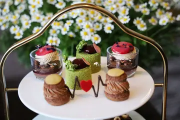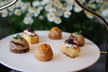 台北晶華酒店上庭酒廊為延續情人之間浪漫甜蜜的氛圍,由晶華酒店法籍點心行政主廚「裴洛偉」,攜手法國布列塔尼的甜點大師「Manuel Bouillet」,推出「法式香頌.可可戀曲」聯名午茶組,包含五款甜點、三款鹹點與二杯飲品台北約會餐廳推薦-晶華酒店 上庭酒廊上庭酒廊 Gallery位於台北晶華酒店2樓,由捷運中山站3號出口,步行約7 分鐘即可抵達。座位區於二樓的開放式廊道上,一旁有ROBIN’S 牛排屋、鐵板燒,一樓則是栢麗廳、azie,三樓則有晶華軒。上庭酒廊 Gallery是全時段餐廳,營業時間從早上十點~晚上十二點,供應三明治、沙拉、炸物、起司盤、下午茶、飲品等,假日還有早午餐,是很適合約會的餐廳。台北晶華酒店-上庭酒廊 Gallery 菜單價位314白色情人節即將到來,台北晶華酒店期望延續情人之間浪漫甜蜜的氛圍,由晶華酒店法籍點心行政主廚「裴洛偉」攜手法國布列塔尼的甜點大師「Manuel Bouillet」,以法國百年巧克力品牌,可可巴芮CACAO BARRY 新品「伊芙卡全果巧克力(EVOCAO)」為主角,無論是情侶間的感情加溫,亦或是姐妹們慶祝三月女王節,這套午茶組再適合不過了!上庭酒廊 Gallery 「法式香頌.可可戀曲」午茶組Manuel Bouillet設計的「法式香頌.可可戀曲」午茶組,是以Cacao Barry 可可巴芮的全新商品–「EVOCAO伊芙卡全果巧克力」為主角進行變化。「法式香頌.可可戀曲」聯名午茶組,包含五款甜點、三款鹹點與二杯飲品,每套2,380元+10%。這套期間限定的午茶組所謂的全果巧克力,是將原本會在製造過程中,被丟棄的可可果肉,透過獨家技術重製成糖,再加回到巧克力製程當中,100%發揮可可豆的潛能,是回歸自然的新型態巧克力,是環保永續的概念,讓我們一起對地球更好。午茶組共推出三款特調:海鹽莓果可可、可可香檳茶、跳跳薄荷可可(3選2)為迎接甜點大廚的來臨,晶華餐飲團隊也不遑多讓的以巧克力打造兩款無酒精調飲。上方圖片感謝好姐妹ANGELABABY享樂日記的支援。我們這天遇到電視台的活動,有許多媒體還有藝人,不太方便拍照,只好跟好姐妹借照片。不過,正好可以見到調酒師,現場製作這次的特調飲品。這款「海鹽莓果可可」,是將新鮮草莓壓成泥後、加入大吉嶺茶蜜及蘇打水,鋪上以鮮奶油、鹽之花及34%札飛柔滑白巧克力做成的鹹香奶蓋。沿著杯口先是近鼻的奶香,入口帶著淡淡的鹹味,而白巧克力賦予了奶蓋不同的香氣及滋味,這個奶蓋非常厲害啊!順著奶蓋之後的是草莓的香氣、茶香及通寧水的氣泡感,這杯「海鹽莓果可可」既清爽又層次豐富的滋味,立刻擄獲了我們了味蕾。「可可香檳茶」使用可可、茶、酵母,經由24小時發酵,帶有細緻氣泡感的優雅口感,可可與茶香的交融層次感。以香檳杯呈現清新的滋味,令人感受不一樣的午茶時光。「跳跳薄荷可可」是以經典調酒「綠色蚱蜢」為發想,將75%醇品坦尚尼亞苦甜調溫巧克力塗抹於玻璃杯口,倒入薄荷可可奶昔、綴以巧克力跳跳糖及脆迪酥。喝下第一口,就是薄荷清涼的驚喜口感,彷彿吃到薄荷巧克力般的香甜滑順,美妙的滋味讓人欲罷不能。欣賞完調酒的過程,就回到座位區慢慢享受我們的下午茶時光了!經典三層塔的下午茶組合,還沒離開服務人員的手,我們就已經拍了幾百張的照片了!這實在太美了!這三層塔中包含五款甜點、三款鹹點,建議先從鹹食開始食用。三款鹹點也分別融入頂級巧克力元素。「心肝情願愛你」是將手工繁複的鴨肝派,拌入75%醇品坦尚尼亞苦甜調溫巧克力,鴨肝派的鹹香搭配上巧克力的苦甜,撞擊出全新的美味火花。「愛就像乳酪般濃郁」是將人氣鹹食小點–康堤起司流心泡芙加以改良,以康堤起司結合義式白醬,泡芙上綴以由札飛34%白巧克力及紅椒粉製成的巧克力片,入烤箱回烤至巧克力紅椒片與溫熱泡芙合為一體,鹹鹹甜甜的滋味於口中驚豔的結合。「魚你就醬甜蜜」將烤至溫熱的布里歐鋪上鹹香魚子醬,接著刨上帶有強烈可可風味的亞然加牛奶巧克力碎,奢華而細緻的風味,值得細細品嘗。有著美式軟餅乾外型的「榛心相愛」是將砂糖混合黑糖粉、鹽之花及香草莢,拌入花郜70%巧克力及烤熟的榛果碎製成麵團,接著以捏製小籠包的方式在麵團內包入榛果餡,放入烤箱高溫烘烤而成,一口咬下即能感受到潺潺留出、溫熱鬆軟的榛果牛奶巧克力,味覺和嗅覺的雙重享受,讓人無比回味。「瑰荔情歌」以及,前者是在香酥泡芙中灌入爽口的覆盆子荔枝蛋奶醬,接著擠上帶玫瑰香氣的巧克力甘納許,抹上少許覆盆子荔枝果醬增色後,綴以玫瑰花瓣及乾燥草莓碎,甜美而夢幻的造型相當吸睛。造型吸睛的「浪漫巴黎」則是以巧克力泡芙為載具,搭配香蕉百香果醬、凝凍以及巧克力甘納許,滋味酸香甜蜜,連結兩顆泡芙中間的巧克力心電圖則象徵著情侶之間的默契與感應。「莓日茶思飯想」使用的巧克力是帶濃醇乳香的札飛34%柔滑白巧克力,再將於小山園抹茶粉製成的海綿蛋糕體中捲入札飛抹茶甘納許,並堆疊上帶有特殊花香的泰莓果醬,接著放上以分子料理手法製成的液態半球型泰莓汁,以及巧克力飾片,日西合併的甜點巧思,口味及外型都充滿驚喜。「莓好戀情」是將伊芙卡巧克力與黑莓、覆盆子果泥一起製成蛋奶醬,搭配巧克力杏仁蛋糕以及米香巧克力脆片、綴上黑醋栗果醬片及蝶豆花花瓣,呈現法式優雅意象。長久以來的婦女節,近年順勢改稱女王節,可以說是整個三月就是女生的