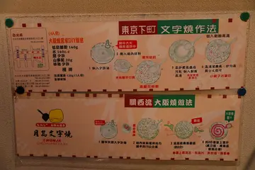大阪燒,源自日本的鐵板小吃個人覺得這道料理算是日式料理中較特別的小吃而且在台灣還不常看到(比起居酒屋、壽司店)這天恰巧在東區路上路過這間看起來頗有日本味,人氣似乎不錯的大阪燒、文字燒專賣店 ▲月島文字燒位在忠孝東路,sogo附近的巷裡店面走一種日式小店的感覺,最顯眼的不是它的招牌,而是店門口排隊的人潮讓人經過也會忍不住探頭看看他到底是間什麼樣的餐廳 ▲門口擺著一整櫃的食物模型光看這些模型,口水就已經流光了啊! ▲店內空間不算寬敞,座位雖小,但坐起來並不會感到不適而且一走進店裡就能聞到超級香的味道!看著別桌鐵板上的文字燒、大阪燒,忍不住想大快朵頤了! ▲牆上貼著文字燒與大阪燒的做法你可以自己動手做DIY文字燒,讓這頓餐吃的樂趣一些當然也可以請服務人員來幫你料理! ▲桌上的鐵板這就是待會要來料理文字燒的鐵板唷! ▲餐點選擇很多除了文字燒、大阪燒之外,也有廣島燒(裡面有加麵的)、烤年糕、烤肉類的料理可以選擇!而且文字燒及大板燒的口味超級多,點餐時你會猶豫好久,因為每一種口味都想吃啊~ ▲這要很注意,千萬不要翹腳,不然碰到桌下的油網就不好了!先前看網路上網友的食記分享,真的有被燙到的喔所以要注意! ▲味噌湯他的味噌湯味道很特別,蔬菜的甜味很重,還帶點豬肉的肉香與平常在日本料理店喝到的海鮮味較濃的味噌湯不同,喝起來很有著甜甜的溫暖 ▲磯邊燒年糕 ▲用海苔包裹住年糕,然後沾上甜甜的照燒醬油像甜食又像鹹食的味道,口感很有嚼勁,年糕非常Q! ◎小知識:磯邊燒泛指—「用海苔將食材包起來的料理」所以不管中間包的是干貝、山藥還是年糕,都稱作磯邊燒喔 ▲單點飲料—綠茶、可爾必思 ▲明太子海鮮年糕起司文字燒—人氣NO.1 ▲服務人員會先端著一大碗文字燒的材料,把它們陸續倒上鐵板,然後開始翻炒(照片中先下鍋的是年糕唷!) ▲全部的食材下鍋之後,就開始攪拌、快炒它們 ▲將高麗菜等食材炒軟炒勻之後,加入高湯等到高湯沸騰,然後稍微拌勻之後,就可以開始吃囉! ▲吃文字燒的時候,是使用這個可愛的小鏟子 ▲將黏在鐵板上的文字燒剷起,就可以吃囉軟滑的內餡配上外層的鍋巴,又軟又脆的口感很特別! ◎為什麼叫做文字燒呢?據說是因為戰後的日本經濟潦倒,窮困的家庭沒有主食米飯能吃主婦們只好將僅剩的食材與麵粉混在一起放在鐵鍋上煎炒成餅來吃而在煎餅的時候,東京的主婦會利用鍋鏟教孩子複習功課所以這道又稱為文字燒 ▲MIX大阪燒(干貝、蝦仁、花枝、牛肉)—人氣NO.1 ▲大阪燒和文字燒不同在下鍋前就先將碗裡的所有食材全部攪拌混勻 ▲攪拌到食材變得像是麵團般的厚重時倒進鐵板上,開始塑形成麵餅狀 ▲接著等底部染上美麗的黃金色澤,即可翻面 ▲兩面餅皮都呈現微焦、黃金色之後便開始塗上醬料 ▲重頭戲就是淋上美奶滋!淋上白色美奶滋的大阪燒實在是太誘人了 ▲接著再撒上海苔粉,然後可以切成四塊這樣食用起來也比較方便 ▲最後放上柴魚片,大阪燒就完成囉~ ▲有看到美麗的橫切面嗎? ▲大阪燒的味道主要來源是醬料的部分麵皮食材因為沒有經過調味,所以味道會比較清淡口感吃起來像吃一塊塞了滿滿食材的蔬菜餅配上甜甜的照燒醬與美奶滋,超幸福超滿足,很好吃! ▲不一會兒,大阪燒就被我完食啦!月島文字燒除了台北,另外在台中也有分店,高雄則是創始店呢!第一次吃到文字燒,覺得很特別,口味也蠻喜歡的不過我更偏愛大阪燒吃起來飽足的滋味餐點份量每份都是以1人份為主建議大家可以多點幾個分著吃,才能吃到不同口味唷價位大概在250~400左右,算是中低價位另外有幾個小意見,就是覺得桌底油網的警告標示沒有非常明顯,服務人員上前點餐招呼時,可以先提醒會更加保險然後是當天不知道是不是因為生意太好太忙,所以服務我們的幾位服務人員態度上較為冷漠,或是問問題卻不理會之類的只是當天個人用餐感受而已,僅供參考~…Read More