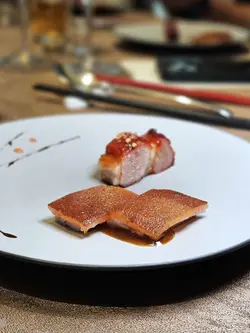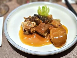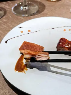 美味:😘價格:💰💰💰💰💰整體:👍👍最近朧粵出了新菜,包括在廣東有食療傳統的鱷魚料理,之前我姊吃過之後大為稱讚,說想再開一桌邀我一起,我在夜市看過鱷魚啦~只是未曾嘗試過,對於師出福臨門有40年資歷的胡福春主廚我們是很信賴的,因為過往幾次在他的打理下幾乎都有很好的經驗(我曉得有些朋友反映過朧粵穩定度的問題,確實需要持續提升..!🤔),這次菜單安排的份量、葷蔬比例都剛剛好,全程水準之上是意料之中,甚至有半數的菜都挺喜歡,包含兩道鱷魚菜色。老菜脯鱷魚湯湯底厚實但無油、滋味清雅甘甜,雖說以前沒吃過鱷魚,感覺上這熟度是很好的,味似雞胸肉、毫無粗柴纖維感,連帶著富有膠質的皮,紅燒鮑魚鱷掌以鮑汁混合雞及大骨熬製的底湯燜扣,相當美味,這必定要叫白飯把鮑汁吃乾淨😋,連裡頭火腩的口感都做得很好。此外許久沒吃朧粵的乳豬,感覺咬感有精進,肉嫩、皮鬆脆如餅乾般的燒香味,而時令過橋鮮魚也是優秀,魚白湯濃郁氣味乾淨,搭佐炸米油香與蘿蔔條的清甜襯托絕佳,最後推薦羊肚菌蘆筍與八菇炒飯這兩道,完全是我吃過會想再吃的蔬食。-季節冷盤三品,海鮮與青瓜是清脆爽口的開場,牛舌風味與聚苑尚在時的版本略有差異,但皆是柔嫩的後段-金蒜黑豬叉燒、脆皮乳豬,叉燒水準依然不錯,乳豬一背一腩~就是有點意猶未盡-三十年老菜脯燉鱷魚湯-紅燒鮑魚鱷魚掌,鱷魚掌膠質與皮的部分和甲魚其實挺像的🐢-黃酒奶油風沙雞,薑蒜脆皮雞+黃酒奶油醬,味略濃-衝浪過橋野生東星斑,由胡福春主廚現沖乳白魚骨高湯,去骨魚片沖過之後熟度剛好-羊肚菌蘆筍百花襯,煨羊肚菌鑲蝦漿蘆筍,食材佳、厚實又噴香-八菇藏香炒飯,這道炒飯是胡師傅自薦的,首先長米炒得油度低但不乾扁,所以那種潤澤彈性是很好的,使用大量菌菇帶入umami,要不好吃也難了!-招待: 蜜汁核桃、金沙鱈魚條、胡師傅親手炒的腰果小魚乾-龜苓甘露凍,椰奶+桂花糖水,龜苓膏壓模弄得挺好看-酥皮蛋塔、蜜香烏龍…查看更多