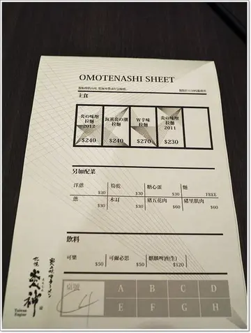 札幌炎神拉麵台灣店 位在捷運國父紀念館站 步行約四分鐘的距離大門進去的長桌區 適合多人聚餐 也是看焰火秀最佳位置 !!! 隔著玻璃近距離的欣賞焰火秀 給人一種視覺震撼感 接待人員態度友善親和 對所有餐點作仔細介紹! 大大"炎神"兩字 來自來自日本書法名家本田蒼風 看起來頗有架式 座位區底下都有置物籃可以放包包 這一區有拉簾設計 放下拉簾 瞬間就能營造出隱密空間感 還有適合一人獨享的吧台區可爾必思 冰涼酸甜 解渴好喝!梅子醋 微酸甜滋味 沁涼解膩!味噌炸雞炸粉脆口不油膩 雞肉吃起來嫩軟不乾柴 搭配高麗菜絲一起吃 更增添清爽感 ~~ 海藻沙拉 上面鋪上滿滿一層細碎叉燒肉 看起來猴賽雷~~~ 清新脆口的海藻 VS 軟又夠味的叉燒 配上底層胡麻醬汁 相當可口! W辛味噌拉麵 唐辛子(紅色) 麻婆豆腐(白) 很特別的組合 以1300度高溫 瞬間乳化湯頭 鎖住香氣及溫度 味噌湯頭相當濃郁 若覺得味道太濃可以再加高湯調整 中捲麵條口感軟硬適中 麵量在點餐時加量不加價 (點餐後再加麵則需加價30元) 叉燒塊選用上等五花肉 約莫4~5塊 吃起來嫩潤好吃 激辛味噌拉麵 為台灣兩周年紀念版 辣度有1. 2. 3. 最低辣度就辣的過癮 筍絲細嫩好咬 黑木耳又軟又有彈性 紅色辣椒絲配上翠綠蔥花 顏色對比更加好看~ 味噌湯頭除了唐辛粉還加入了特製辣油 湯頭喝起來比上一款更清澈一些整體份量十足 不加麵的情況下也能吃得很飽…查看更多