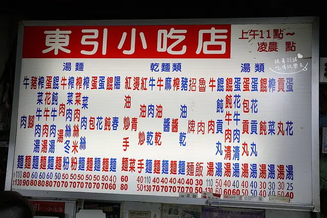 台北知名人氣宵夜麵店《東引小吃店》,因為藏在菜市場裡頭,營業時間很妙,是直接從中午11點一路開到隔天凌晨4點,《東引小吃店》可以說是台北宵夜美食的指標,是許多上班族下班後的慰藉,也曾讓美食家舒國治老師特別用專欄介紹,在網路上有超過5000則評論,過去網友針對環境、價目不清與味道偏鹹頗有微詞,但近期《東引小吃店》改善不少。|越夜越多人的松山東引小吃店《東引小吃店》就位於南京東路五段巷弄裡面,在松山南京公寓菜市場裡頭,從捷運南京三民站4號出口步行過來大約是3分鐘的距離,附近還有彰化肉圓魷魚羹與謝家川味凉麵等南京三民美食,《東引小吃店》營業時間很特別,當菜市場休市的時候就開始營業,當市場開始營業時,《東引小吃店》就是休息時間,所以是從中午11點一路賣到隔天凌晨4點。《東引小吃店》攤子就在菜市場,原則上衛生也不太可能好到那邊去,其實去看評價大部份都說不衛生較多,但我也說句公道話,《東引小吃店》現在室內用餐空間更明亮也更乾淨了,然後攤子煮麵跟滷味都有用壓克力板去檔住,然後碗筷也都放在餐具消毒機裡面,比以前好很多了,以哥這種吃了好幾年的客人來說,有看到其改變啊!|東引小吃店菜單價格東引小吃店菜單終於有改版了,以前菜單只有麵食,要點滷味還要口頭跟老闆說,而且滷味還沒有標價格,現在所有品項都有在東引小吃店菜單上,不論是麵食還是滷味價格都可以在攤位價目表看得到,真的是有進步,所有品項都有分大小碗,大碗的份量老實說真的還蠻大的,現在點完就直接付款,可以用電子支付,點完後會給你一個號碼單,依號碼牌給餐。|東引小吃店推薦必點豬腳麵與滷味滷味(豬皮、鴨腸、花干、蘿蔔) NT$190元《東引小吃店》滷味絕對是重點啊!以前是真的沒有價格,要買就要先問,要不然就是盲夾等到報價格時嚇一跳,現在比較好了,終於有價目表了,從之前吃到現在會推薦花干、鴨腸與紅白蘿蔔,滷花干絕對是重點啊!也有很多人都說滷花干超好吃的,以前吃起來會超鹹的,但現在鹹度是剛剛好不會太過,加一點豆辦醬,會鹹辣更有滋味。白蘿蔔滷得很透,單吃就很有味道,而且連菜心都有一點鹹度,這個鹹度是剛好的,偶爾也會點紅蘿蔔,處理得算還不錯,沒有太多的土味,然後鴨腸很脆嫩,而且整個也是滷的很夠味,吃起來也沒有腥味,也是相當好吃的,豬皮就比較路人有一點普。豬腳麵(小) NT$100元以前有吃過牛油拌麵、滷肉飯,也看過很多人會推薦牛肉麵或麻醬麵,但吃來吃去還是很喜歡《東引小吃店》的豬腳麵,主要是湯頭很濃醇帶有一點蒜味的鹹香,入口還會有回甘,湯頭真的很棒,最近一次吃感覺就沒有那麼鹹,但是蒜香就沒有那麼明顯,但整體來說還不賴。麵條本身就帶有一點口感,吃起來還不錯,不會太軟也不會太硬,帶皮的豬腳本身就有一點鹹度,不會太過,吃起來皮有一點Q,肉質也很軟嫩,還蠻好吃的,喜歡重口味的可以沾一點辣醬一起吃,整個很推薦啊!小碗的份量就可以吃很飽,大碗的份量會讓你吃到撐。以前公司在附近,所以吃了好幾年了《東引小吃店》,其實也是看著開始有些變化,內用座位越來越好,整體衛生有進步,味道沒有以前來得鹹,再來不管是麵食還是滷味都有標上價格了,以前大家認為不好的地方都有在改變,值得肯定啦!台北宵夜美食推薦《東引小吃店》,老老闆女兒出去開的東引快刀手也是相當值得推薦。…查看更多