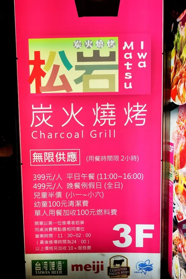 中秋節就要到了說到中秋節絕對不會忘記要賞月吃月餅吃柚子近年來越發興盛的烤肉也是一年比一年誇張燒烤店從吃到飽到高價位的單點式在中秋節都是一位難求夯到不行這天要體驗的就是炭火燒烤(吃到飽) 提早感受一下中秋節的氣氛 位在某公寓的三樓從一樓的巷口就有指示牌 還算是挺醒目挺好找的 醬料區瓶裝飲料區有可樂、雪碧、美麗果......一旁則是鋁箔裝的果汁當天的小菜盤--煙燻鴨胸 煙燻製品的獨特味道一直以來我都不是很習慣主觀的覺得很普通上方淋的醬料對我來說也太過於濃稠了點 不過擺盤色澤倒是讓人很有食慾 價位平日午餐$399 (升級成頂級餐$599)晚餐及例假日$499 (升級成頂級餐$699) 一開始店員會先上比較基本的肉盤最先的肉盤都是"風味餐"就可以點選的 這肉塊哈比個人覺得烤起來口感很不錯軟嫩易嚼又沒有太多多餘的筋 上選沙朗 香烤雞肉 一開始店員就先來為我們解說一下每種肉品怎麼考會比較好吃順手的就幫我們烤了好多種的肉 雞肉嫩又好吃 搭配著他們特製烤肉醬微微的麻還挺開胃的 之後又加點了海鮮類 不過我真的要講一下他們家的白酒大蛤蜊這這這這這....這光看就知道比起一般蛤蜊可能還小了些更別提他跟大蛤蜊差了十萬八千里看到這個我和偷米哥完全是大傻眼的狀態 還好不腥不臭的現烤生蠔稍稍的挽回了一下局面不然用餐的興致瞬間削了大半 接著我們看到這天第二個大傻眼的食材---安格斯牛小排來人阿 快把它拖出去斬了我左看右看上看下看看起來活脫脫就是一塊安格斯牛油結果就是我和偷米哥完完全全不敢吃 安格斯頂級牛肉、安格斯肋眼牛肉 油花的部分分布均勻店員有特別提醒烤到內裡稍微粉紅色的時候是很好吃的不過雖然口感真的不錯但是總覺得同時伴隨著的還有一股濃濃的油耗味 實在是讓我敬謝不敏吃幾口後我完全是舉白旗投降 這時候深深覺得加價的肉沒有比肉片好吃傷心之餘還是忍不住點了一份年糕烤肉沒有棉花糖或是年糕做個結尾就覺得少了甚麼 自己嘗試烤了一兩片之後偷米哥有些痛苦加點無奈的眼神讓我不得不求助店裡的年糕達人親自示範了兩種不同的烤法明明是一樣的東西怎麼她烤起來就真的恰到好處的外脆內Q 烤到像這樣就差不多可以了 沾上煉乳和花生粉後一口吃下超級滿足來先說說好的地方吧肉片的口感都中規中矩還算不錯店員親切健談 也樂於分享烤肉的小小撇步 這讓我覺得就像跟朋友在一起一樣輕鬆自在但是說真的 如果是要加價成頂級餐的話 我是覺得不太值得肉品的肉質和味道都無法讓我們滿意 最後沒有吃很飽但也沒有想要再吃就這點來說我們是挺失望的 希望這只是特例阿…查看更多
