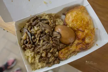 其實我自己是個很喜歡吃油飯的人。不過畢竟油飯的米飯來源是糯米,不算好消化的食物,這樣的美食當然不宜吃過量,所以自已也不敢發狂似的亂吃油飯哈... 大家也知道油飯是台灣的經典美食小吃;也是傳統習俗生完小孩,在小孩滿月時會準備彌月油飯祭神跟送禮,也算是種分享喜訊之意 (不過送油飯以男孩居多)。 而在迪化街永樂市場內,就有一攤老字號高人氣的油飯專賣店-林合發油飯 (リンハーファヨウファン)。 林合發油飯創業於1894年,販售時間從早上7點半至中午12點,實質上是賣完就收啦~ (其實我自己來了好多遍,但每次都買不到....明明都還不到12點!可見林合發的滋味肯定不簡單!!) 即將要過年,剛好又是年貨大街開始的時候,說什麼這次都要早起吃到才甘願。 這不誇張,我抵達試場門口時已經看到排隊隊伍了.... (我們前面就有8、9組顧客不誇張。) 隊伍的開頭就在那位拿傘的婦人那,然後等待店家呼叫,再前往攤前點餐。 看看店家的服務人員從一大早就開始分工包裝。 在後方柱子上的小白板有寫上這個月以及下個月的公休日期。(所以有特地前來的顧客,這公休日期要留意一下喔~) 看看另一旁桌上這些,正是顧客預訂的彌月油飯。(不過這也太大盒了吧~) 還有彌月油飯會搭配的紅蛋 (赤いゆで卵)跟雞腿 (鶏もも)。 還好這一次早起前來,總算第一批的油飯到手啦!!而且看到幾乎每個老饕都是好幾盒好幾袋的購買,害我也把持不住,自己也買了三盒油飯~ 袋子上跟餐盒上都有印上電話,不過現在沒有接受電話訂單喔!切記要購買要現場買。(另外餐盒上的攤位號碼不是1041號,是1430號。) 我們買了三盒,其中兩盒是要帶回家的。一盒則是我們的早餐 (朝ご飯)~ 其實點餐方式可以直接問店家人員。(林合發油飯是有菜單的,不過通常都是給外國遊客看的,這點很貼心)。 不過我還是把menu打出來給大家參考一下囉!(如果是要彌月油飯就要另外詢問店家人員) 油飯 (半斤/50元,一斤/100元)、台湾のおこわ (300グラム/50台湾ドル,600グラム/100台湾ドル)、Fried Sticky Rice (300g/NT.50,600g/NT.100) 雞腿 (70元/支)、鶏もも (70台湾ドル/一枚)、Chicken Thigh (NT.70) 滷蛋 (10元/顆)、醤油煮卵 (10台湾ドル/一個)、Marinated Egg (NT.10) 芋頭粿 (20元/個)、里芋もち (20台湾ドル/一個)、Taro Cake (NT.20) 這一個紙盒的餐盒可以裝一斤或半斤。我們帶回家的兩盒都是純油飯,所以選一斤裝滿的。 而底下是我們當下吃的組合,油飯 (半斤)+雞腿+滷蛋 (共130元)。(紅蛋基本上是彌月油飯的組合,不過想吃應該是可以購買) 他的油飯裡的香菇很飽滿,不會乾乾癟癟的。 不過他的雞腿讓我覺得跟坊間賣的不太一樣。一般彌月油飯的雞腿不外乎都是炸雞腿,而這支....是烤的耶!! 表皮烤得金黃色樣,看起來就是可口,因為是用烤的,所以吃起來不會像炸的來的那麼油膩,而且香氣十足,雖肉質少了幾分彈牙感,但我覺得油飯中,能從雞腿做了不一樣的改變,是個很棒的選擇~ 接著就是主角油飯囉!他米飯是長糯米,吃起來粒粒分明,帶著略彈牙感,他的米飯黏度不是那種很黏很像米糕狀的那種,口感甚好,這是我喜歡的類型。 更出色的是,坊間很多油飯的油度很容易就吃膩,他的不會讓您滿嘴油膩感;而且口味不算很濃郁的那種,他也不會很鹹,主要的鹹度來自於拌炒過的香菇、絞肉、蝦米、油蔥的部分。 香菇是比較鹹一些沒錯,但是他還保有香菇的嫩度和水份,搭配油飯一起來,味道表現恰恰好!! 我大概知道為什麼他們家油飯的魅力了。他的油飯我覺得是個很樸實卻又很紮實的角色,是個極為耐吃的美味油飯呀!!難怪會是很多人選擇的彌月油飯代表。 最後,如果大家有到迪化街辦年貨時,不妨早點起來,先去吃個好吃的油飯補充戰力,再來好好辦年貨。相信是很棒的選擇~查看更多