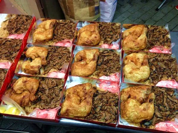 其實我自己是個很喜歡吃油飯的人。不過畢竟油飯的米飯來源是糯米,不算好消化的食物,這樣的美食當然不宜吃過量,所以自已也不敢發狂似的亂吃油飯哈... 大家也知道油飯是台灣的經典美食小吃;也是傳統習俗生完小孩,在小孩滿月時會準備彌月油飯祭神跟送禮,也算是種分享喜訊之意 (不過送油飯以男孩居多)。 而在迪化街永樂市場內,就有一攤老字號高人氣的油飯專賣店-林合發油飯 (リンハーファヨウファン)。 林合發油飯創業於1894年,販售時間從早上7點半至中午12點,實質上是賣完就收啦~ (其實我自己來了好多遍,但每次都買不到....明明都還不到12點!可見林合發的滋味肯定不簡單!!) 即將要過年,剛好又是年貨大街開始的時候,說什麼這次都要早起吃到才甘願。 這不誇張,我抵達試場門口時已經看到排隊隊伍了.... (我們前面就有8、9組顧客不誇張。) 隊伍的開頭就在那位拿傘的婦人那,然後等待店家呼叫,再前往攤前點餐。 看看店家的服務人員從一大早就開始分工包裝。 在後方柱子上的小白板有寫上這個月以及下個月的公休日期。(所以有特地前來的顧客,這公休日期要留意一下喔~) 看看另一旁桌上這些,正是顧客預訂的彌月油飯。(不過這也太大盒了吧~) 還有彌月油飯會搭配的紅蛋 (赤いゆで卵)跟雞腿 (鶏もも)。 還好這一次早起前來,總算第一批的油飯到手啦!!而且看到幾乎每個老饕都是好幾盒好幾袋的購買,害我也把持不住,自己也買了三盒油飯~ 袋子上跟餐盒上都有印上電話,不過現在沒有接受電話訂單喔!切記要購買要現場買。(另外餐盒上的攤位號碼不是1041號,是1430號。) 我們買了三盒,其中兩盒是要帶回家的。一盒則是我們的早餐 (朝ご飯)~ 其實點餐方式可以直接問店家人員。(林合發油飯是有菜單的,不過通常都是給外國遊客看的,這點很貼心)。 不過我還是把menu打出來給大家參考一下囉!(如果是要彌月油飯就要另外詢問店家人員) 油飯 (半斤/50元,一斤/100元)、台湾のおこわ (300グラム/50台湾ドル,600グラム/100台湾ドル)、Fried Sticky Rice (300g/NT.50,600g/NT.100) 雞腿 (70元/支)、鶏もも (70台湾ドル/一枚)、Chicken Thigh (NT.70) 滷蛋 (10元/顆)、醤油煮卵 (10台湾ドル/一個)、Marinated Egg (NT.10) 芋頭粿 (20元/個)、里芋もち (20台湾ドル/一個)、Taro Cake (NT.20) 這一個紙盒的餐盒可以裝一斤或半斤。我們帶回家的兩盒都是純油飯,所以選一斤裝滿的。 而底下是我們當下吃的組合,油飯 (半斤)+雞腿+滷蛋 (共130元)。(紅蛋基本上是彌月油飯的組合,不過想吃應該是可以購買) 他的油飯裡的香菇很飽滿,不會乾乾癟癟的。 不過他的雞腿讓我覺得跟坊間賣的不太一樣。一般彌月油飯的雞腿不外乎都是炸雞腿,而這支....是烤的耶!! 表皮烤得金黃色樣,看起來就是可口,因為是用烤的,所以吃起來不會像炸的來的那麼油膩,而且香氣十足,雖肉質少了幾分彈牙感,但我覺得油飯中,能從雞腿做了不一樣的改變,是個很棒的選擇~ 接著就是主角油飯囉!他米飯是長糯米,吃起來粒粒分明,帶著略彈牙感,他的米飯黏度不是那種很黏很像米糕狀的那種,口感甚好,這是我喜歡的類型。 更出色的是,坊間很多油飯的油度很容易就吃膩,他的不會讓您滿嘴油膩感;而且口味不算很濃郁的那種,他也不會很鹹,主要的鹹度來自於拌炒過的香菇、絞肉、蝦米、油蔥的部分。 香菇是比較鹹一些沒錯,但是他還保有香菇的嫩度和水份,搭配油飯一起來,味道表現恰恰好!! 我大概知道為什麼他們家油飯的魅力了。他的油飯我覺得是個很樸實卻又很紮實的角色,是個極為耐吃的美味油飯呀!!難怪會是很多人選擇的彌月油飯代表。 最後,如果大家有到迪化街辦年貨時,不妨早點起來,先去吃個好吃的油飯補充戰力,再來好好辦年貨。相信是很棒的選擇~…Read More