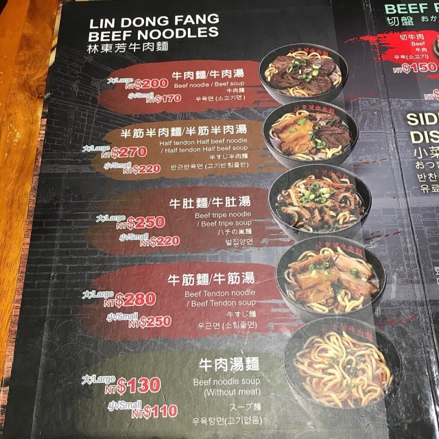 今次來台北旅遊,專程到林東芳吃牛肉麵,原來已搬家了,幸在網絡找到新地址,也離舊店不遠。不知是不是假期關係,晚上六點多到,竟然不用排隊,即時有座位安排。我們點了牛肉麵及半筋半肉牛肉麵,牛肉很好吃,值得一讚是碗麵夠熱,吃完整碗麵,碗仍是暖暖的。這是十分重要,溫度很影對牛肉麵質素,正因為熱溫度維持良夠,吃了一碗熱騰騰的牛肉麵,尤其冬天,感覺很溫暖。也點了小菜,那豆皮很出色,酸菜也是我最愛,很美味。整體來說,讚!