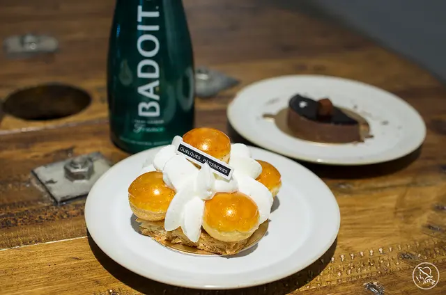 吃完午餐決定順路到附近的某某,台北法式甜點"老字號",兩點左右如我所料~客滿,儘管某某的內用區以小店來說,已算是挺多座位的了,總之便改為外帶到飯店吃。<大溪地香草聖多諾黑 NT$220>其實光以作工就覺得蠻細膩,小泡芙表層的焦糖晶瑩剔透,可感受迸發在嘴裡的層次,卡士達甜而不膩,這有點老掉牙的形容,但心裡就是這麼覺得,底部千層派皮相疊的俐落脆度以及焦苦風味都很棒,香緹鮮奶油的搭配使整體很平衡,甜度也剛好夠,果然是十分好吃的聖多諾黑。<蜂蜜威士忌起司蛋糕 NT$200>外帶手滑黏到側邊了~還好沒有影響到主體...採用蘇格蘭威士忌,對我來說酒香不強烈(就是一種相對性的感覺),起司綿稠化口、氣味清爽,與酒香蜂蜜有融合感,帶出一股鹹甜的風味,還不錯,起司蛋糕對熱天較為敏感,離開冷藏也沒很久,質地似乎又更綿軟了些,也可能是因為使用了進口的日本藏王乳酪,才形成口感差異嗎?這就不曉得囉。 …查看更多