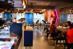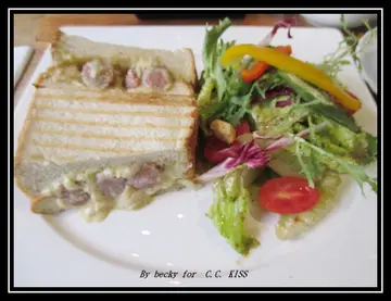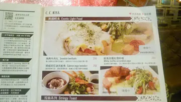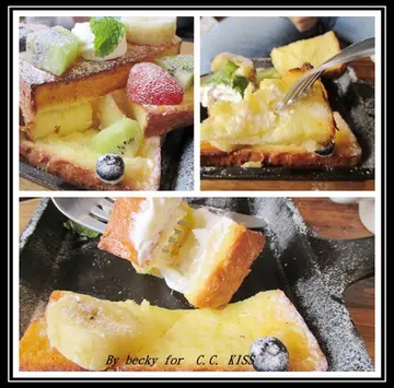 現在有許多下午茶店,除了要有讓人為之一亮的裝潢外,也有要有美味可口的料理,這次來到位於東區的C.C. KISS,它是CHIRLE BROWN查理布朗最新品牌,就讓我們一同來看看其環境及餐點!店家位於東區商圈的精華地帶,從捷運忠孝復興5號出口往前走不到10分鐘,即可看到。它是從查理布朗裡面進入的。門口有擺著店內的熱鬥的餐點及DM。進入查理布朗,就可以看到往2樓處口。當然往2樓處也是擺有MENU。往2樓處有著簡樸的裝飾。一上到2樓,可以看到店內著名的雪糕裝飾。2樓的裝潢有著非常有質感的的工業風空間,在一邊的牆上有著一張可愛的紅大嘴,非常有特色!而要往座位處的左邊,是櫃台及製做料理的地方。店家是獨家引進最新流行的鑄鐵鍋麵包餐,同時結合創意雪糕餐點,這是可以客制化的選擇冰淇淋及其他的裝飾。選擇了靠窗的位子,可以看的到外面的景色,另外在每個椅子下有個可以放置物品的籃子,非常貼心。而桌上都已經放置有餐具,因是半自助式的,所以可以自行倒水及拿不足的餐具。這是菜單~可以選擇自己想要吃的餐點。選好餐點後,要直接到櫃台點餐後再結帳,櫃台處擺設有當季的新品。坐了一會先,先送上飲料~莓因雪冰沙(NTD160)及普羅旺斯柚桶茶(NTD160)莓因雪冰沙是朋友點的,味道酸酸甜甜,入口又帶些清涼,是新鮮草莓打成泥後與牛奶及優酪混合,裡頭紅色的是草莓醬,所以入口後帶著濃濃的草莓醬,在炎熱的天氣喝是很不錯的選擇。我點的普羅旺斯柚橘茶,是在皇家紅茶中加入柚子絲及柑橘絲,所以倒在茶杯中有著柑橘的香氣,入喉後有著甘甜的味道及橘子的酸、柚子的甜,獨特的氣息增添豐富層次感。這個是紐約皇後脆薯(NTD160)~它是馬鈴薯炸成金黃色的,上面有著濃郁的起士淋醬,送上桌前再加上現刨的起司絲,也有味重的培根。叉上一根入口,炸的很酥脆,上面有著濃郁的起士醬味,甜甜鹹鹹好滋味,小塊培根的味道帶些鹹味,更能稱托出其更味,不過冷掉後,油脂變多,還是要趁熱吃會比較有味道。法式水果香榭(NTD160)~上面有著奇異果、香蕉、草莓及藍梅,再加上土司及鮮奶油,整體看起來很豐盛。水果部份味道很新鮮,入口有些微酸甜,而土司部份則是厚片土司切成長方型,咬一口土司,非常柔軟,沒有因煎後而過硬,入口還帶些甜味,沾上鮮奶油更是有味道,不用加上旁邊附上的蜂蜜也很有味道。KISS經典拉絲(NTD180)~這道是鹹食~是厚片土司夾著帕瑪士起司及德國香腸,旁邊還有沙拉;首先先吃沙拉,有著生菜、秋葵、甜椒及蕃茄跟麵包塊,淋上油醋醬,生菜很新鮮,甜椒也很鮮甜,不過油醋醬汁味道略重,有些微嗆,若是可以再調和一點,也許會很不錯!再來是土司~厚片土司非常鬆軟,裡頭有著會拉絲的起司,加上店家調製的辣醬,咬一口後,有著起司的香、黑胡椒的味道,感覺上也有芥末味,整個味道非常搭配;而德國香腸煎的剛好,裡頭還帶些肉汁,整體在嘴中有著多種口感及不同的層次味道,蠻推薦這道的!整體吃下來,食材很新鮮,且環境也很舒適,空間也很寛廣,且還可以吃到各式各樣的不同甜點及鹹點,在悠閒的下午,可以找個三、五好友來個輕鬆約會,可以到東區這裡享受一個放鬆的下午茶時光。…查看更多