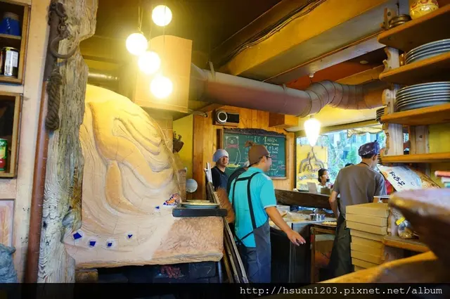 柴燒披薩&起司。 台大店~~~ 位於捷運公館站附近。這次來台北第一站!!! 吃PIZZA了。。。愛莉絲發現台北巷弄內好多PIZZA小店哦!!!!! 這家柴燒披薩也很特別悠~~~ 位於小巷弄的轉角!!!非常小一間。而且超難停車耶~到處都是紅線,還有警察在開單!!!幸好我們是坐捷運來的。。。坐捷運很方便耶。這家看起來破破爛爛的小店,生意可是超級好悠。 連招牌都超級不起眼的!!!!! 店內就是靠這個窯來燒烤PIZZA的!!!!! 現在創業都是年輕年耶~~~~~ 這家店內用位子很少。 只有2張桌子!!! 如圖。。。是其中一張!!!!! 椅子跟桌子都是木頭~~~~~~ 而且椅子真的不好坐啦!!! 屁股會很痛。二邊各3個位子左右。。所以大部份人都是外帶啦。。 餅皮是現桿的悠~~~~每一張PIZZA都是現點現做,所以需要時間!!!!! MENU~~~ PIZZA看起來都是蔬食耶!!!! 太神奇了。 大約有11種口味。。。似乎陸續有新品推出!!!! 每一樣看起來都好想點哦~~~~~ 韓式泡菜>我從頭到尾都沒有看到價位耶!!! 大約是100初吧!!!每張PIZZA都是8吋。現點現做。PIZZA都是薄片~~~ 皮薄料多!!! 起司也是不手軟哦。。。 滿滿的起司。。。泡菜份量也很多耶!!!我們在看菜單的時候發現這家PIZZA都沒有肉耶~~~ 全是蔬食的。。。感覺不錯耶。韓式泡菜吃起來微微辣。餅皮很有咬勁!!! 邊邊烤得脆脆的~~~ 好吃耶。 蘋果肉桂。來個甜的~~~起司份量還是很多。。。!!!其實不是很喜歡肉桂,但是蘋果起司配上少許肉桂還蠻對味的~~~似乎有加了點蜂蜜!!!蠻清爽的。 這個真的很好吃耶!!! 脆脆的蘋果配上香濃起司跟甜甜的蜂蜜。。。很特別的口感。 三杯菇菇(羅勒)喜歡吃菇類可以點這個!!!!菇的份量很多~~~ 這一份大約是一個女生的份量。。。若食量大或是男生可能會吃不飽啦~~~ …查看更多