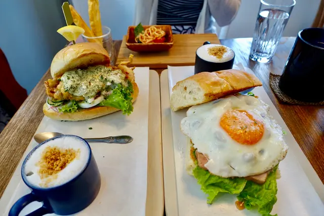 朋友Henry推薦桔梗三明治給我,在大安站附近的三明治店。回香港工作前找他吃。Jie Genge sandwich is a new place for sandwich near MRT Da An Station. Came her with my friend Henry.店子不大,有小量的户外座位。建議開店時間去吃,之前他們有很好喝的水,應該是放了柑橘類的水果一起泡的,但現在聽說沒有了。Doom茶 Doom Tea香料味道撲鼻的奶茶,用的是紅茶,茶外還加了橙、豆蒄、肉桂和薑,相信冬天喝的話一定會很棒。Spiced milk tea with orange peel, nutmeg, cinnamon and ginger.BBQ牛小排 Beef short ribs sandwich58度低溫烹調的牛小排配肯瓊風味烤肉醬,我喜歡肯瓊香料的味道但如果烤肉醬可以多加一些應該會更好吃。Sous vide beef short ribs with egg, Cajun, spice and BBQ sauce. Flavorful Cajun but more BBQ sauce would be tastier.雞明白了 Chicken with mentaiko sauce 相比起牛肉我更喜歡這裡的雞肉,用上雞腿肉燉煮,肉質非常軟嫩,明太子白醬不會像一般的白醬膩,反而清爽可口,喜歡明太子的鹹香恰當不超過,加上煎蛋,非常好吃。Tender chicken leg with mentaiko, cream sauce. The sauce is delicious, I like their chicken sandwich more than the beef one.…查看更多