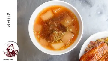 前身叫做庫倫街張魯肉飯的《梅滿美食》,是大龍峒這邊的老字號,也曾被食尚玩家與其他知名媒體報導過,《梅滿美食》就在非常傳統的老屋裡面,用起餐來特別有時代感,《梅滿美食》最有名就用大稻埕老字號鬼女神醬油,滷汁去燉煮的魯汁、焢肉與魯菜頭都是非常出色的,《梅滿美食》這個做為老台北人的早午餐到底是有多好吃?大龍峒老字號焢肉飯梅滿美食《梅滿美食》就位於台北市大同大龍峒,旁邊就是台北市孔廟,從捷運圓山站2號出口步行過來大約是4分鐘,《梅滿美食》附近就是大龍市場與大龍街夜市,吃的東西也很多,像我很喜歡的重慶豆漿炸蛋餅與一直想去吃的阿仁炒飯都在附近,《梅滿美食》主要就是賣焢肉飯或魯肉飯傳統小吃,營業時間從早上7點就開賣,可以讓人一早就吃到重口味早點。《梅滿美食》整個店裡看起來就很傳統,本身也是間老屋,室內座位數不多,戶外也有幾張桌子,我個人還蠻喜歡坐在外面,除了採光不錯外,就有一種在老城區吃著傳統美食的感覺,《梅滿美食》比較特別的是它們的滷汁都會加上鬼女神醬油,就好像台中蕭爌肉飯擺上大川醬油招牌,但我還真的不知道鬼女神醬油,上網查才知道是大有來頭的大稻埕老醬油廠。梅滿美食菜單價格點餐方式是直接拿梅滿美食菜單劃單,梅滿美食菜單上面最多人推薦就是魯肉飯、焢肉飯、菜頭湯與排骨湯,主要是用滷汁去滷的品項都很熱門,像是魯豆乾、魯菜頭與紅燒瘦肉也是很不錯,只是當天有些狀況魯菜頭與紅燒瘦肉要到11點才出鍋,有點遺憾沒吃到,整體來說價格來說焢肉飯65元也不算太貴,雖然也沒到多便宜。焢肉飯(加肉燥加蛋) NT$65元+NT$10元來《梅滿美食》就是要點焢肉飯或魯肉飯,要不然就像這種焢肉飯加肉燥,一次兩種招牌都能享受到,它們滷肉飯的特色就是加了大量的酸菜,讓整個吃起來就比較不會那麼油膩,滷汁是微甜不死鹹,多汁很好拌飯來吃,米飯的部份較黏一些,但不會太濕,算是煮的還可以。焢肉部份就是用鬼女神醬油去滷的,整個滷的相當入味,你可以選要肥一點還是要瘦一些,我拿到的部份是完整的三層,看起來是有一點油,但吃起來肥瘦比例是剛剛好,肥而不膩,瘦而不柴,滷汁真很香而且不會太過,吃起來不會很鹹,跟彰化爌肉飯一樣都會插牙籤,所以吃的時候要注意,額外點的滷蛋也是滷的很透。排骨湯 NT$60元梅滿美食排骨湯真的超強的,菜頭本身是另一鍋燉煮,排骨酥的部份則是用蒸煮的方式,點餐的時候就把兩個合在一起,喝起來真的超強的,湯頭很甘醇,蘿蔔也是很入味,咬下去還會有水份的感覺,排骨酥本身也是很入味,肉質是比硬一些,但也好吃,整個大推啊!如果拿來做排骨酥麵應該也很好吃。以前剛出社會的時候也有來吃過《梅滿美食》,還寫成一篇食記,回頭去看有一點慘不忍睹,當時也不懂吃,有時候就是這樣一件事情做多做久了你也知道好壞,兩次來吃《梅滿美食》心境也不同,以前覺得50元就貴,現在反而覺得65元是可以,以前覺得還好,現在還蠻能看得見其優點,現在老實說真的還蠻好吃的,有空就來吃吃老味道吧!…查看更多