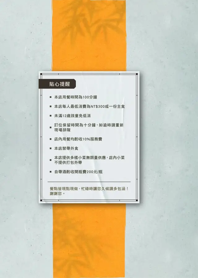 座位白天營業晚上營業寵物友善餐廳家庭聚餐無障礙設施外燴服務需預先訂位停車便利外送服務線上訂位酒精飲料包廂 (Details)