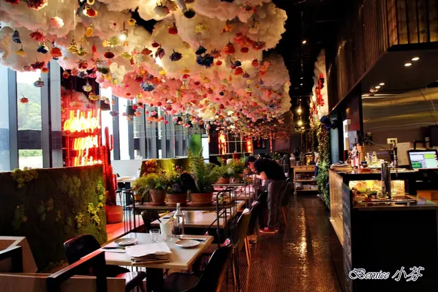 棧 F.M.L Cafe 花樣拿鐵是棧 F-U Kitchen 直火廚房全新代表作,從裝潢到餐點、甜點等都是視覺系的設計。內裝以森林為概念,滿天的棉花糖雲朵加上繽紛的花海當成天花板,另外餐廳角落有浪漫搖椅,整片頂天花草牆等都是拍照打卡的熱點啊!爆漿起司的披薩、唯美的星空甜點等就是要大家殺光記憶卡啊!在此要跟大家提醒一下,棧 F.M.L Cafe 花樣拿鐵是位於美麗新廣場,由捷運劍南路站二號出口直走即可抵達。而非是有摩天輪的那個美麗華喔!千萬別走錯了喔!棧 F.M.L Cafe 花樣拿鐵從門口到角落,每個細節都很講究,完全是視覺系的設計。門口的霓虹燈加上整片花草牆,就已相當吸睛。門口的招牌上強調出三個元素<花草> <肉食><拿鐵>,把店內森林系的裝潢,供應了主食、咖啡及甜點的特點,一併點出特色來。然後就是尖叫聲出現了!幾乎第一次走進棧 F.M.L Cafe 花樣拿鐵的人,都會<哇>地叫了出來,然後接著手機、相機就拿出來拍照了!幾乎每個人的順序都是一模一樣XDD有如棉花糖一般的雲朵,由天而降的繽紛花海,這會不會太夢幻了呀?這不先拍個30張,怎麼可以呢!門口一旁有個獨立的半開放空間,若人數夠就宛如包廂一般,很適合團體聚會。另外利用半人高的花牆當作屏風,坐在裡頭也彷彿小包廂般地保有隱私,想拍多久就拍多久,不會影響到別人。最裡面還有一間大包廂,可容納八至十人,有低消的限制。棧 F.M.L Cafe 花樣拿鐵不只是裝潢令人拍個不停,就連餐點也是很欠拍啊!(笑)新鮮重乳酪青檸沙拉 $320/大這天五大一小用餐,這個分享的沙拉份量上很剛好,輕脆的蔬菜搭上檸檬醬汁的酸香,還有帕瑪森起司的鹹香,深受大家的好評。FML經典肉醬麵*煙燻厚切辣味培根 $450給料不手軟的肉醬,還能見到蕃茄煮熟的外皮,微酸帶辣很是開胃。厚實的煙燻培根吃來相當飽口,加上炸蒜片,此時最適合來瓶啤酒了!軟殼蟹開放式三明治*辣根醬 $400這軟殼蟹應是見過尺寸很大的,炸得酥香脆,外看樣子就很可口。在法棍切片上先放上了滿是蕃茄、洋蔥的辣根醬,辣根醬由於帶著山葵的辛嗆味,在歐洲國家常應用在燻魚、烤牛肉上。這道三明治則在辣根醬中拌入了檸檬,因此除了辛辣感之外,還多了檸檬的酸香,不僅中和了辣味,又是清爽開胃。澳洲和牛漢堡肉深盤 $880/大瞧瞧這太犯規的起司,這一份深盤都用到500g的起司,難怪這牽絲的模樣這麼誘人了!而主角正是這澳洲和牛漢堡肉,雖然已是碎末狀,但吃來口中滿溢著牛肉的鮮香與起司的鹹香。這雖然也稱為深盤,但做法跟芝加哥深盤披薩的正統做法是不太一樣的。外皮吃來比較像是麵包,最上層飾以蛋白霜灑上抹茶粉及油漬蕃茄,吃來起司與和牛的比例最搶眼,因此吃不太出來抹茶的味道。厚實的內餡,每一口都能嚐到豪邁的滋味,吃來真的超過癮的!乾式熟成肋眼 $2500/18oz採用美國prime等級肋眼部位,大份量的18oz,搭配了薯條及生菜。乾式熟成是讓牛肉外層與表皮油脂因水分蒸發風乾,鎖住內部的水分,且肉質肌理在緊實的過程後,也會讓油花更集中。因此這熟成過的牛肉料理過後,依舊維持有如鮮肉般的質地,吃來的口感更是軟嫩鮮甜,此時只要灑上點鹽就能享受這頂級的美味。彩虹戚風蛋糕用完正餐,開始要來少女心大噴發了!這採用天然食材伯爵茶、甜菜根、抹茶等製作而成的彩虹戚風蛋糕,軟綿細緻,搭上焦糖冰淇淋吃來冰涼又甜蜜。星空蛋糕-抹茶紅豆這是夢幻到會令人尖叫的星空甜點系列啊!漂亮的鏡面露出漸層的抹茶,內餡是慕斯蛋糕及紅豆泥,並不會太甜,是大人的口味。星空蛋糕-櫻桃巧克力另外這個繽紛的星空內餡是櫻桃巧克力果泥,酸甜滋味很美妙。星際死星 $250搭上星際戰士一起上桌,後面的恐龍是小樂的玩具亂入,正好就像是什麼奇怪的電影情節XDD。以香蕉、黑芝麻、竹炭及大紅豆組合而成的酷炫冰沙,吃的時候就好像吸入了星球中的什麼物質,是一個好吃又好玩的冰品。抹茶男孩 $220採用京都宇治抹茶及鮮奶調和合成,一旁附上了濃縮咖啡,加入後喝來除了抹茶香,更多了咖啡的香醇。芒果草泥莓 $250抓住草莓季的尾巴,再嚐一口吧!否則就要等到冬天才能再吃到了!草莓奶昔為底,加上芒果奶昔,裡頭還能吃得到真實的草莓及藍莓。沁涼莓果 $180這一杯飲品好適合夏天喔!以氣泡水的透明感搭配色彩鮮豔的水果,蔓越莓、藍莓、柳橙,迷迭香及檸檬,都使氣泡水更加酸甜好滋味。紫色西西里 $180一旁附上的是火龍果汁及蝶豆花汁。以檸檬汁為基底,其上飾以紫地瓜製成的冰。先倒入火龍果是桃紅色,再倒入蝶豆花之後,遇酸就成了夢幻的紫色。在還沒有喝之前,就不知要拍多少張照片了!喝來是清爽的酸甜,紫芋冰融化在飲料中,漸漸呈現奶昔的模樣。棉花糖小姐 $180將一般的拿鐵咖啡飾以了甜美的彩色棉花糖,實在太吸睛了!把濃縮咖啡從棉花糖上淋下去,看著這過程實在好療癒喔!這天跟著好姐妹們在棧 F.M.L Cafe 花樣拿鐵拍照吃飯聊天,渡過一個相當愉快的午後。當天在IG及FB上發了深盤牽絲的動態,之後又發了星空蛋糕的照片,整個討論度爆增啊!這裡真的很適合安排約會,推薦給大家!…查看更多