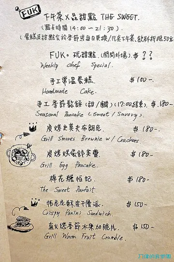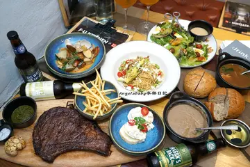一塵不變的美食與拘謹的拍照餐廳似乎讓用餐多了份壓力精緻可口但是份量很少的美食讓用餐少了一點視覺與肚皮的滿足感熱愛吃牛排但是走進牛排館荷包總是大失血如果跟babe一樣👉熱愛新鮮、精緻大份量、舒適包廂環境、牛排控、餐酒愛好者babe不藏私推薦 棧 F-U Kitchen 直火廚房-戰斧專門店線上菜單 menu👉讓你來之前可以免驚嚇輕鬆早午餐300起、午晚間主食350起+100升級成飲料與餐點在中山北路一段上相當引人注意的復古工業風建築風格推開有點重量的金屬大門,兩尊落地摩艾在門口歡迎透明玻璃晴天時的陽光灑落室內,60年屋齡的紅磚牆保留了原貌並在裂縫中童趣的塞入了樂高積木無違和感的讓新舊衝撞出如畢卡索風格的壁畫感半開放式廚房有著最引人注意的黑鐵烤爐「棧直火廚房」追求食材自然原味,執著於直火碳烤的原始風味柴火部分選用本地龍眼木柴燒及木炭直火碳烤,藉由木炭導火、龍眼木導煙燻的原理店內 70%有毛細孔的食材包含麵包、蔬菜、肉品、海鮮等,在柴燒碳烤的原始烹調下,增添迷人煙燻香氣乾式熟成牛排搭配直火碳烤,以高溫火烤先封鎖肉汁,藉由旋轉轉軸,上下移動烤架控溫,造就焦香外皮與內層香嫩多汁肉質,迷人的烙痕與煙燻香氣店內走狹長不擁擠路線、桌與桌間的距離讓人滿意每一空間都有電視可以看轉播,運動賽季可以來這裡大啖炭烤牛排配精釀啤酒👍單人套餐比預期中的平易近人比較吸引babe的是“黑胡椒牛尾燉飯450"廚藝不在水準之上的餐廳是不敢端出牛尾這道難以處理的功夫菜店內提供wifi、沒有特別的用餐時間限制一樓共有一間大包廂、開放用餐區有兩長桌利用樓梯下方的三角空間存放炭火包廂前方提供一拳擊區、聚餐更有娛樂性包廂內很適合聚餐、同學會甚至是主題慶生party(可容納12人)二樓比一樓有更多間半開放式包廂著名的巨型水管卡座,就在棧直火廚房每一巨型水管可以容納6人左右的空間拍照或是用餐都別有特色如果你喜歡中山北路上的車水馬龍,盡頭的座位區視野與採光是店內最佳角落店內低消為一杯飲品,加收一成服務費可以自行帶酒來搭配餐食 #開瓶費另外計價店內沒有用餐時間限制,唯一遇到假日客滿時間建議為2.5小時今天babe是五位好朋友一起用餐,看一下菜單選擇最划算而吃得飽的點餐方式1.老饕雙人分享套餐3600元含碳烤麵包、湯品兩碗、沙拉、前菜、飯麵主食、帶骨牛排主餐、配菜兩份、飲料(加價升級折扣80)、甜點(升級梵谷的星夜加200)炭烤果物光和沙拉、酸辣海鮮湯、美墨臘腸花(鷹嘴)豆湯、西班牙肉腸蛤蠣、羊奶堅果辣椒麵、短斧帶骨熟成肋眼22oz飲品升級精釀啤酒👉棧直火廚房多了水果精釀調酒使用新鮮水果為基底,讓討厭啤酒花苦味的朋友可以放心飲用✨每日限量✨葡萄柚精釀啤酒\百香果精釀啤 原220折扣80👉140元太划算了單點布朗尼oreo奶昔250追加一份單點 黑胡椒牛尾燉飯450先上桌的分別是兩杯視覺沁涼喝起來充滿水果天然香甜味的精釀啤酒左手邊的葡萄柚以酸中帶甜的風味讓精釀啤酒喝來更加清爽右手邊的百香果精釀啤酒以香甜與百香果籽的口感讓整杯香甜如碳酸飲料般的欲罷不能歐式麵包炭火加熱後的炭火薰香搭配橄欖油醋醬搭配,視覺飽足相當加分小鐵鍋盛裝著熱呼呼的湯品左手邊:美墨臘腸花豆湯(鷹嘴豆)以雞湯為底的加入了超級營養的鷹嘴豆、花豆、洋蔥等熬煮,搭配辛香料如香菜籽、回鄉、芹菜粉、豆蔻、百里香等調味濃郁如泥狀的綿密、帶點南美墨西哥風情右手邊:酸辣海鮮湯使用大量的蝦頭、洋蔥西芹等羅宋湯配料,多了泰式的檸檬葉、香茅、冬蔭功醬等南洋風味裡頭的配料很實在的放入了小章魚、蟹肉、蛤蠣等海鮮讓這一碗湯搭配一塊男生全頭大的歐式麵包就已經4分飽babe吃過以質感與創意取勝的沙拉 炭烤果物光合沙拉風乾番茄搭配炭烤鳳梨、蜜漬無花果、百香果醃製西瓜皮(不是青木瓜喔)豐富的顏色搭配與多變化的高營養果乾組合,放入水煮蛋與焦糖核桃這每一口的甜蜜真讓人一吃就上癮甚至可以讓沒有食慾的午餐多了這項選擇其實不需要搭配盤內的胡麻醬,單純品嚐高質量生菜會讓你更加喜歡天然的鮮菜甜味精釀啤酒就是要搭配這種熱前菜才過癮 西班牙臘腸蛤蠣奶油、蒜片搭配辣椒與洋蔥大火爆香後加入西班牙臘腸快炒及新鮮肥美的蛤蠣多了西班牙臘腸的肉感與吸飽微辣湯汁的杏鮑菇,蛤蠣的鮮味融入湯底醬汁收的不是很乾、濕潤度比較多鹹度單吃也可以接受牛尾加入了波特酒慢火燉煮到膠質釋放、皮的部分帶點Q彈與微微的脆感使用義大利長米燉煮的奶香燉飯,不膩口的比例上頭刨上帕瑪森起司,佐以微苦甘的芝麻葉牛尾的醬汁有著番茄蔬菜的甜味與肉汁的香濃,燉飯保持在義大利做法的軟中帶著些許的硬度整體吃來飽足又過癮套餐中的堅果羊奶辣椒麵橄欖油清炒天使細麵搭配核桃、南瓜子、花生等堅果類增添口感比較特別的是羊奶起司(菲塔起司)增加滑口度原擔心會有羊奶的腥騷味居然不見了..反而是清爽的橄欖油辣椒麵香氣讓人一口接一口緊接著是babe覺得來棧直火廚房必點老饕雙人分享餐的主因一份高達22oz的乾式熟成 美國PRIME雷神小戰斧帶骨紐約客炭火直接燒烤到油脂滲出表面、金黃焦香香氣逼人超大木頭托盤上頭放著三款搭配牛排的調味:青醬、海鹽、烤蒜頭不定期更換牛排配菜:橄欖油酥炸脆